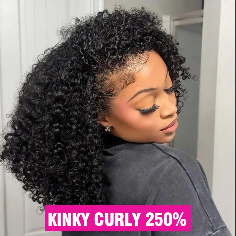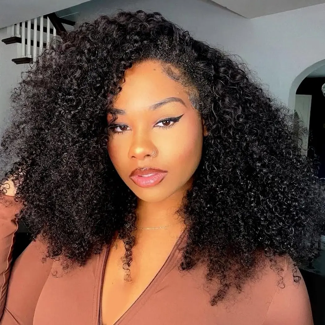 Kinky Curly Half Wig Human Hair 250% Density 3 In 1 Seamless Flip Over Half Wigs Human Hair