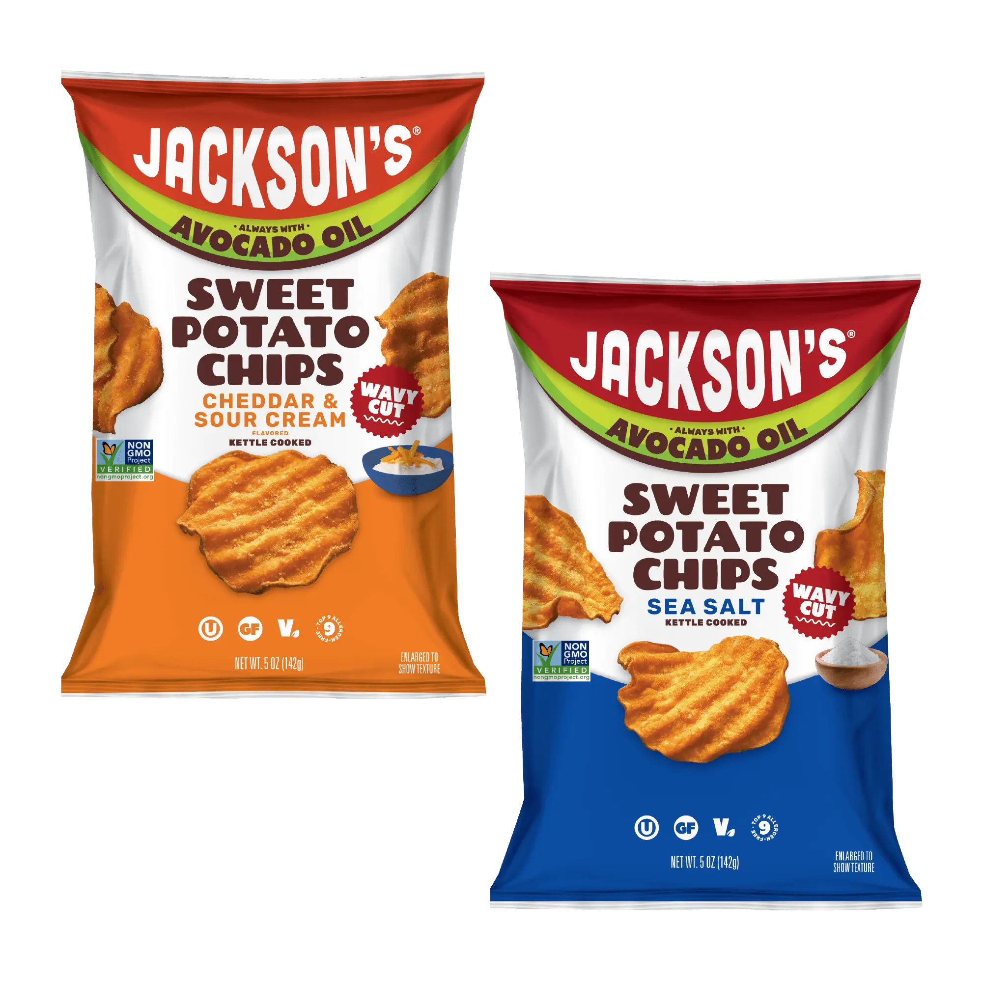 Meet your new snack obsession. Jackson's Wavy Sweet Potato Chips are kettle-cooked in premium avocado oil — never seed oils — for a bold, satisfying crunch that hits different. SUPER good. Zero compromise.