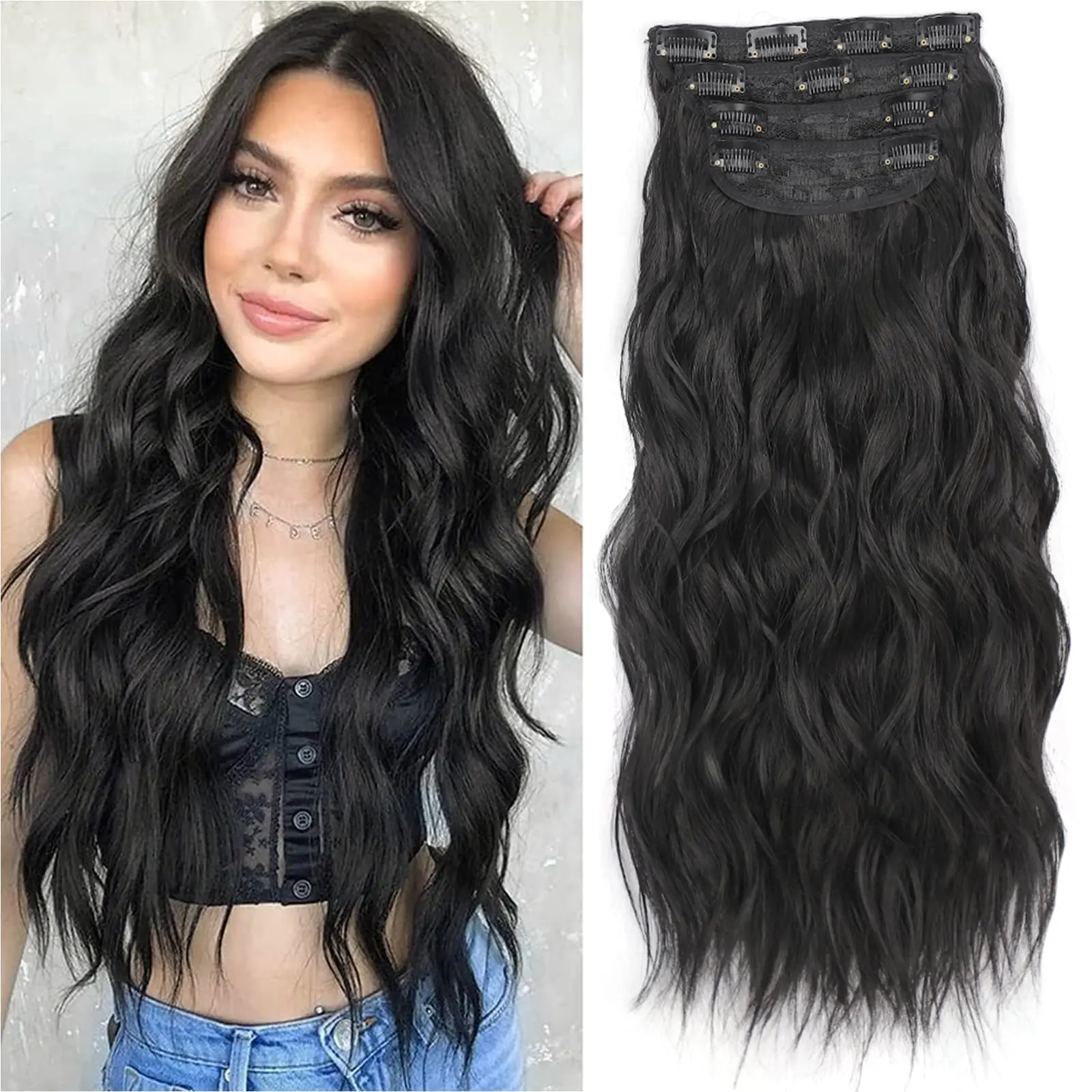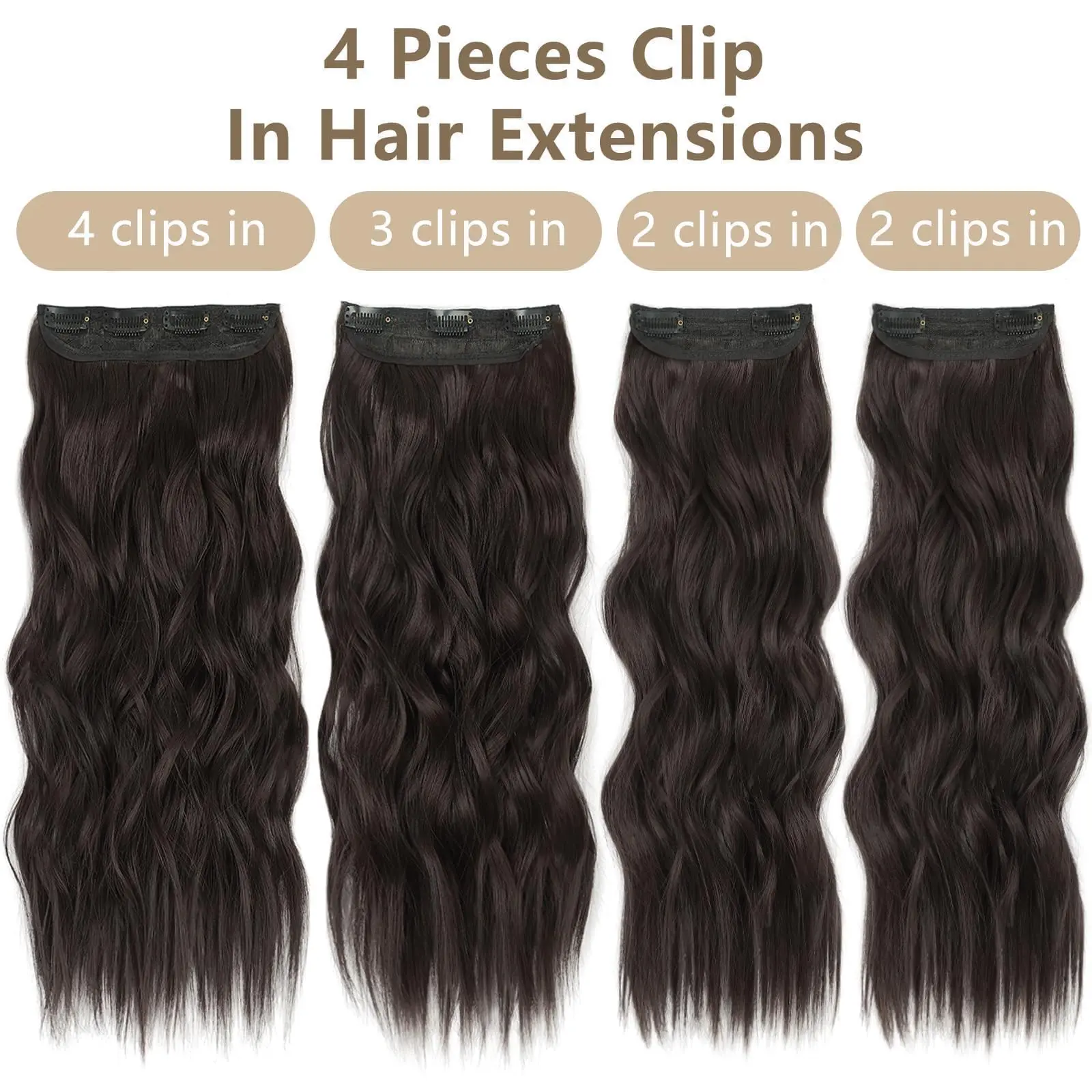Absolutely gorgeous extensions for synthetic. Full and wavy, more hair than I expected. Clasps are nice and sewn on well. Definitely would order from AISI HAIR AGAIN