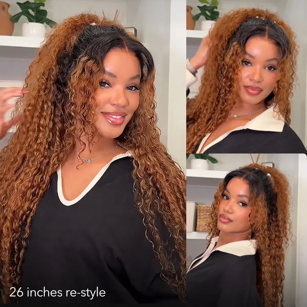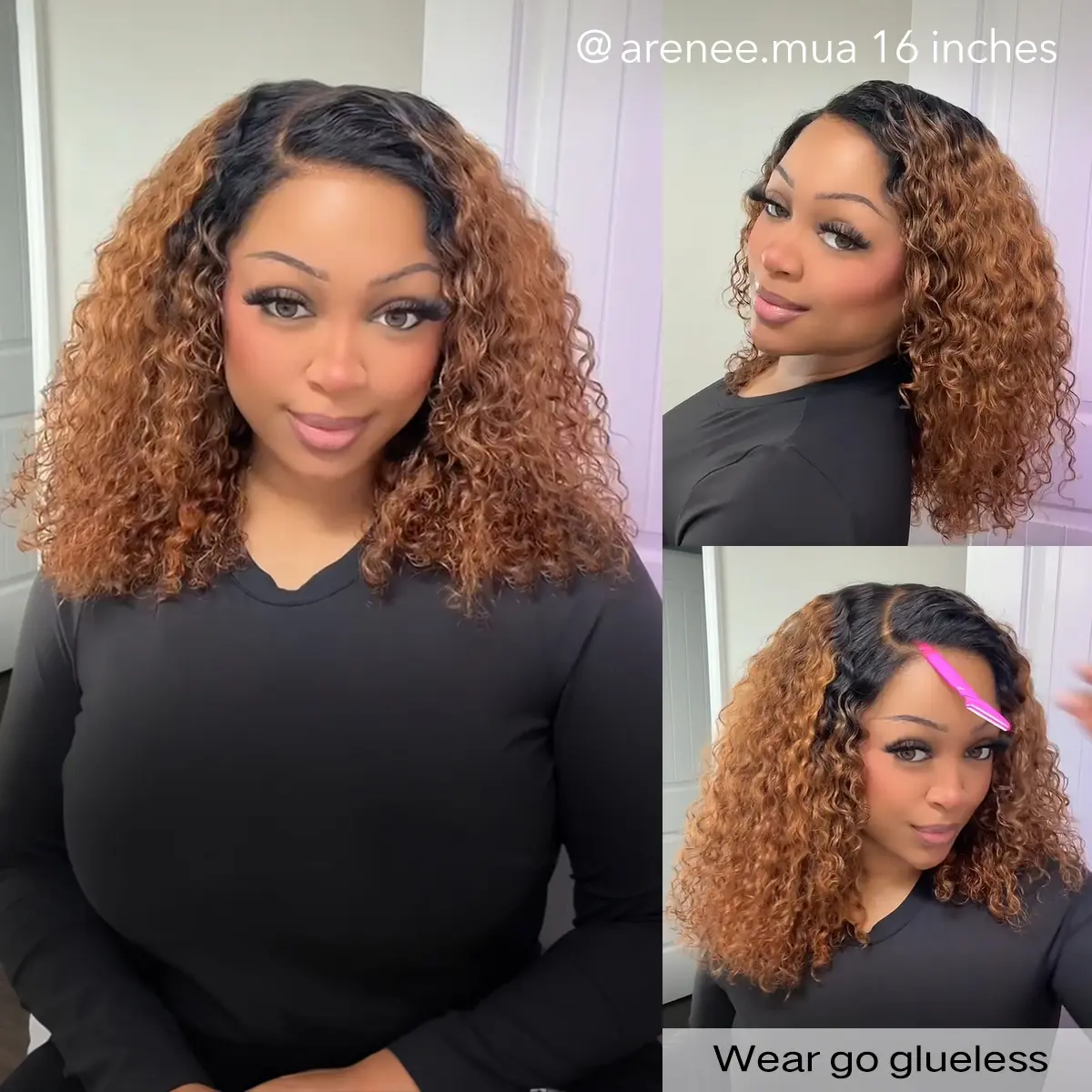Transform your look in minutes with the Wavymy Water Wave Glueless Ombre Brown Wig — featuring a soft 7×5 lace closure for a natural parting and a realistic scalp finish.