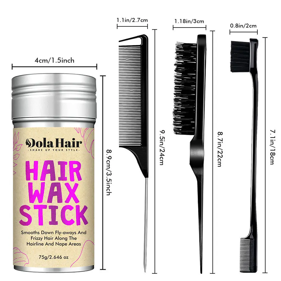 ·【Hair Wax Versatility of Use 】Dola Hair wax stick for all hair types & hair texture, slick back hair brush 3pcs kit for straight hair, short hair, low volume, fine hair texture, suitable for daily styling, work meetings, travel outdoor, dance competitions.