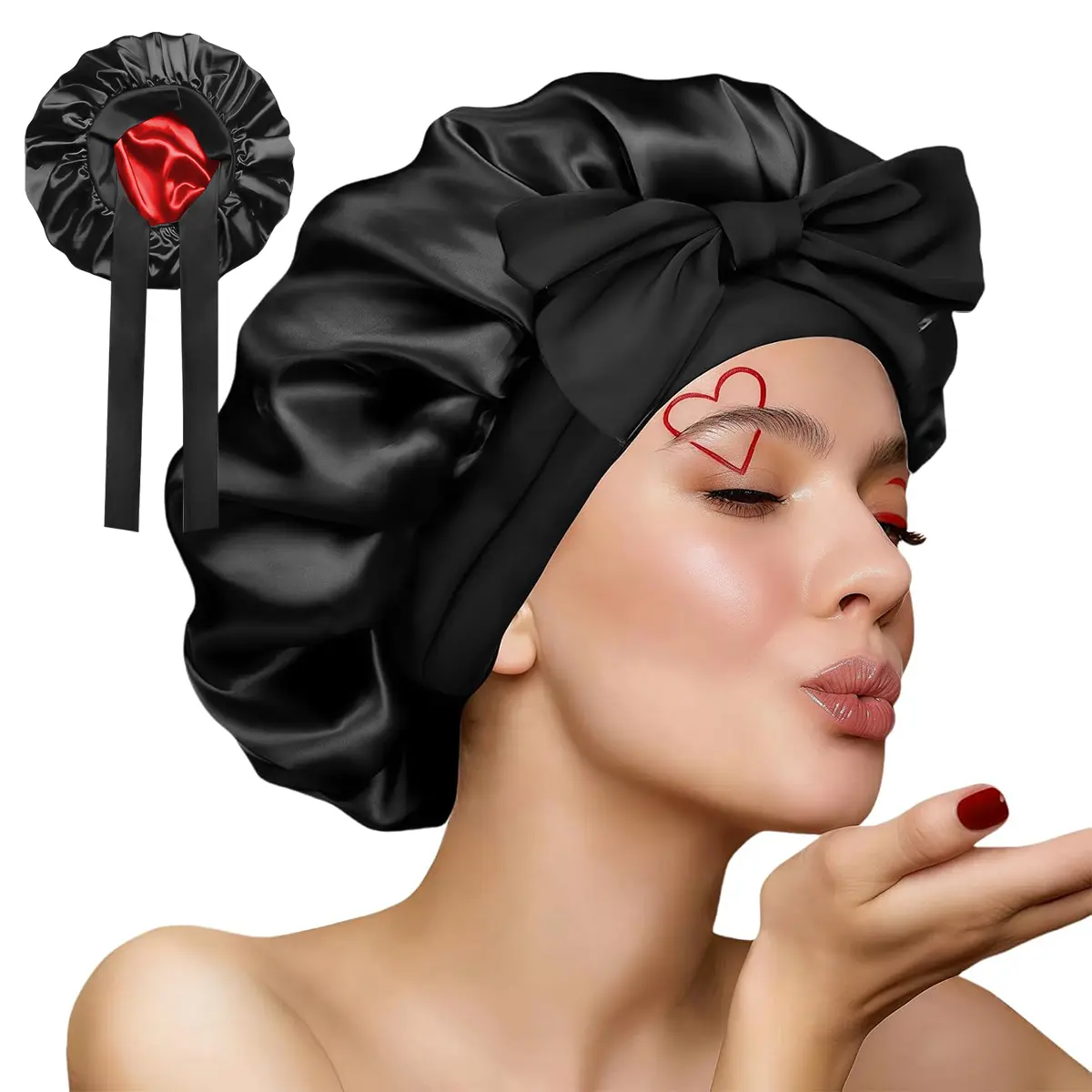 High quality material: This is a satin silk hair bonnet for women hair. The satin fabric is as smooth as silk, soft and skin friendly. The reinforced satin fabric is more lightweight, and it is not easy to fade. Don't worry about the color sticking to your pillow. The binding part is also made of skin-friendly soft polyester fabric, which is very elastic and does not feel tight on the head.