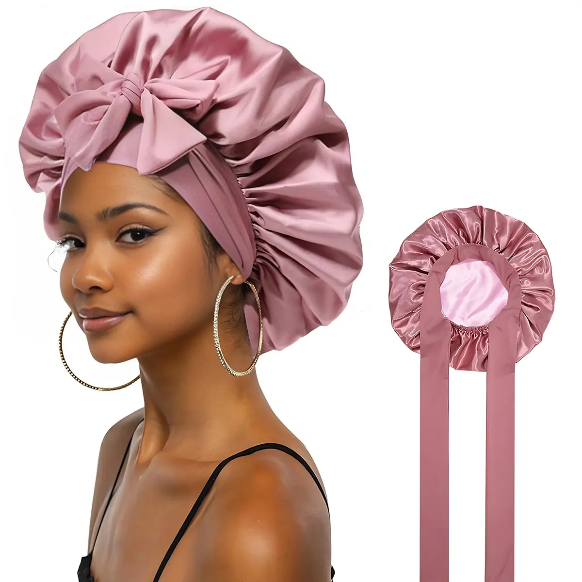 Silky sleep bonnet for all kinds of Hairstyle: Our satin silk bonnet is designed with full cover premium satin, which will make your hair frizz-free and tangle-free by reducing friction between your hair. Therefore, they are good choices for curly, natural, wavy, straight, kinky, long hair and braids, box braids, etc.