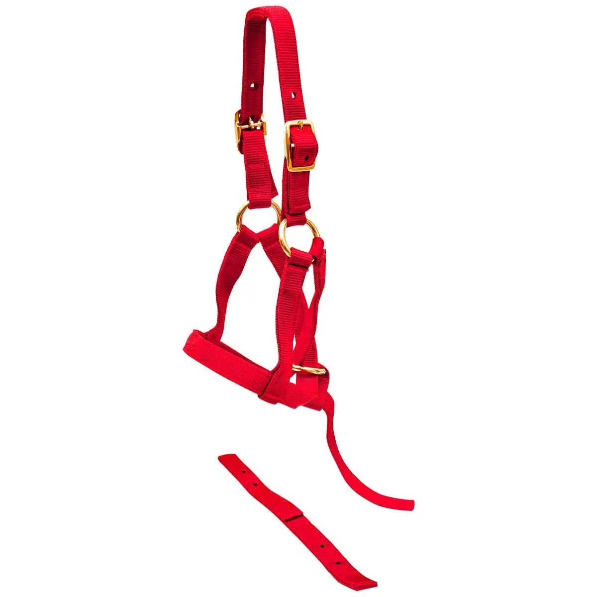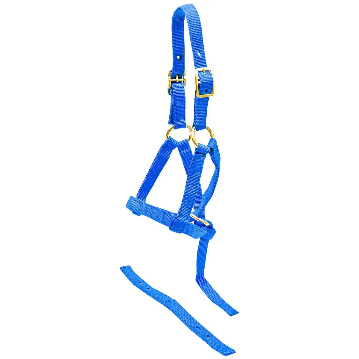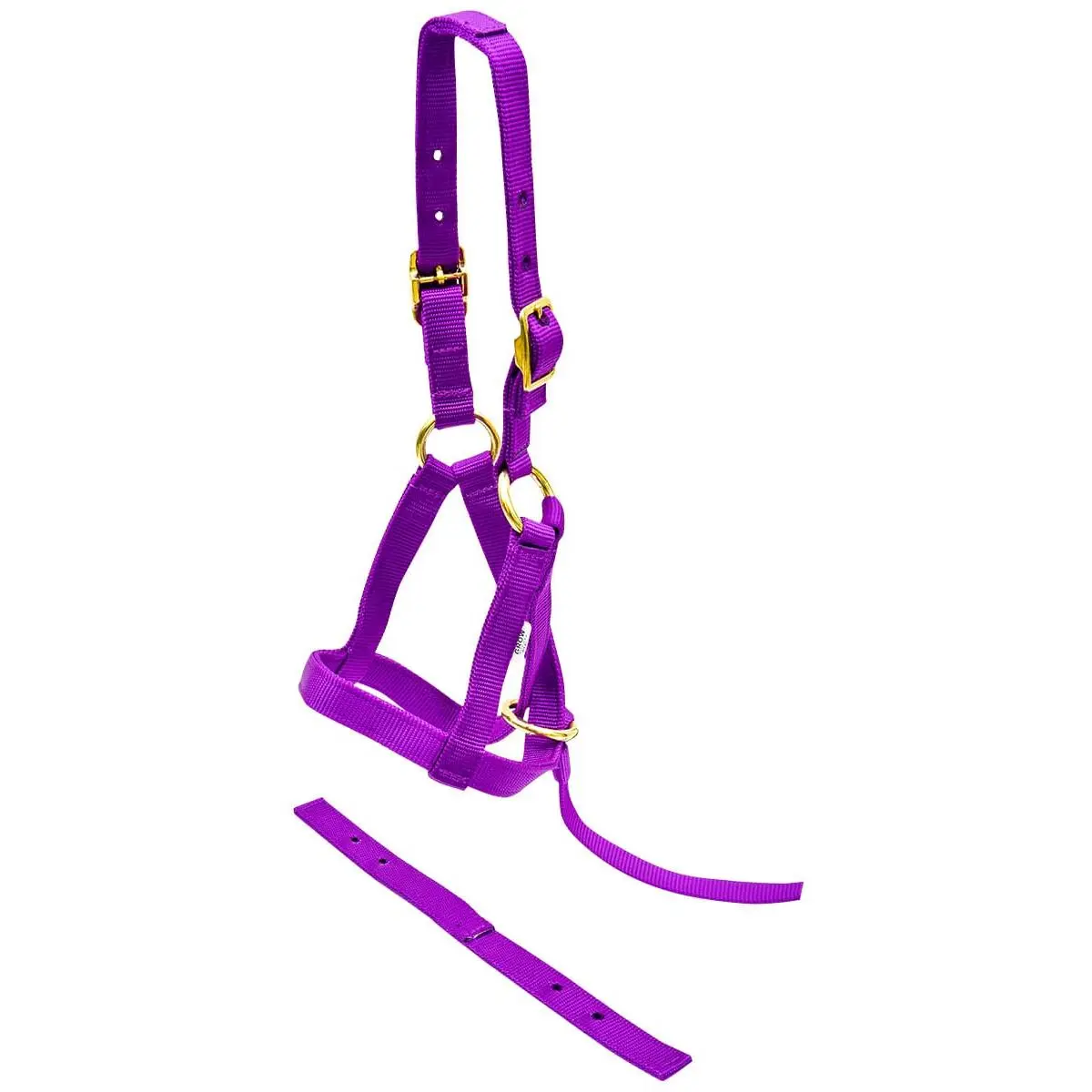 The Jeffers "Grow With Me" Horse Halter is designed to adjust and grow with your horse, making it the perfect choice for young horses. Crafted from durable 2-ply, 3/4"W nylon webbing, this halter features brass-plated, die-cast rings and buckles for added strength and longevity. Its innovative design includes two crown pieces, allowing the halter to expand as your horse grows from foal to weanling, providing a secure and comfortable fit throughout their development.