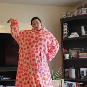 LOVE this blanket hoodie especially when you need something to snuggle up in when the air conditioner is on. So comfortable!