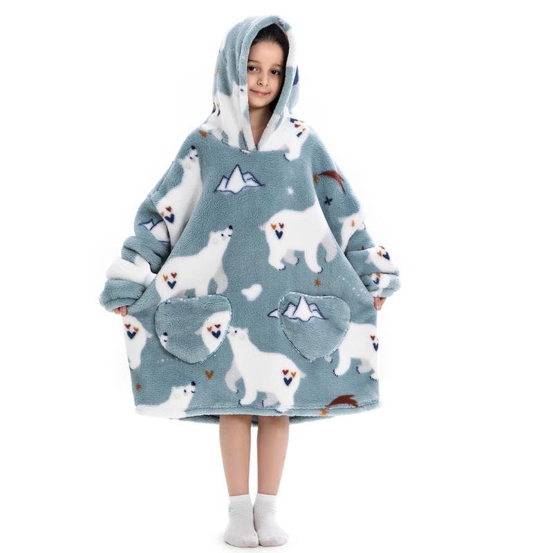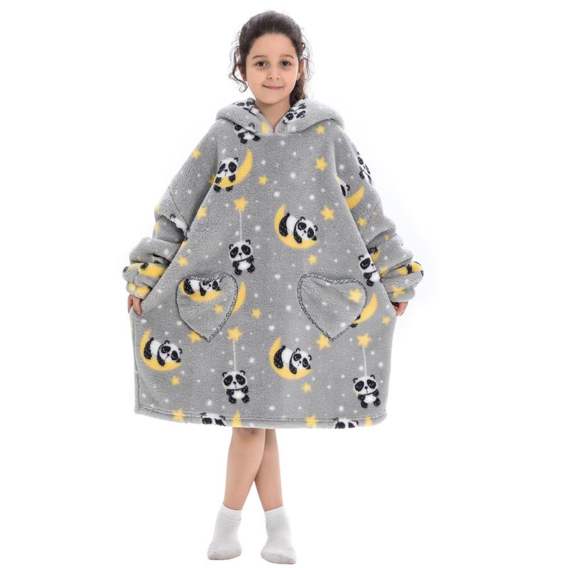 Wearable Blanket Hoodie for Boys Girls Kids, One Size 1Pcs Oversized Nightgown Loungewear Wearable Hoodie Sweatshirt Blanket Warm Hoodie with Pocket