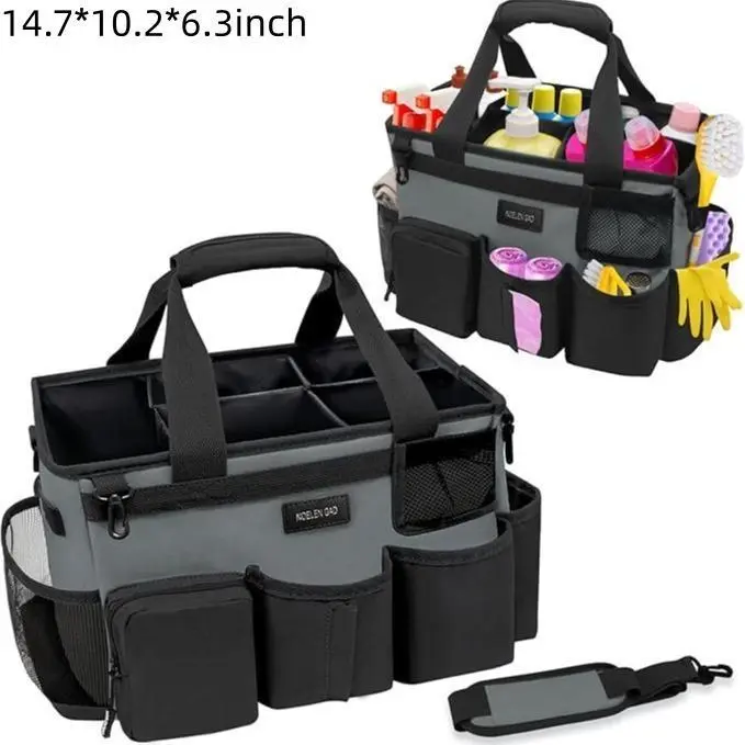·Large Wearable Cleaning Caddy: Our cleaning organizer bag is perfect for storing cleaning supplies & tools, measures 15.4 x 9.8 x 9.1 inches. Cleaning caddy bag with handle and adjustable shoulder straps for easily cleaning in the home, kitchen, sink, car, and outside. Keep your cleaning items well-organized and neatly. Great for maids and housekeepers