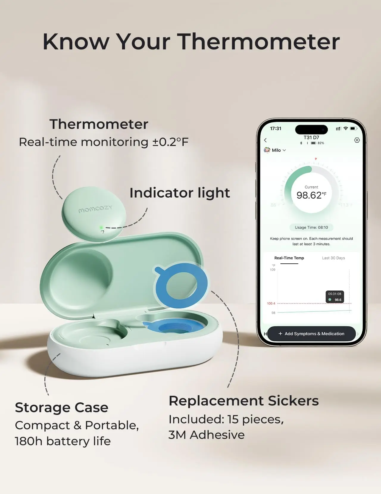 ·【attention】Please update the Momcozy app to the latest version before connecting to the T31 wearable baby thermometer.The app is free for lifetime use. Replacement stickers are available separately.
