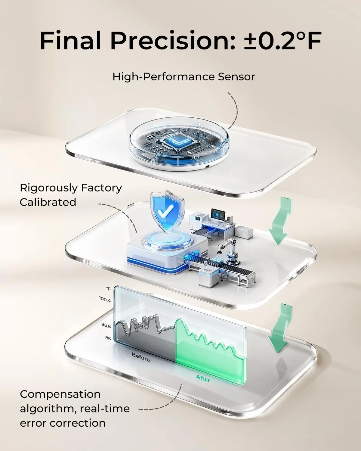 ·【±0.2°F High-Precision Sensor & Reliable Temperature Monitoring】Equipped with a high-performance sensor and compensation algorithm, this Momcozy baby thermometer delivers fast, accurate readings with ±0.2°F precision.By tracking temperature changes, it helps parents better understand their baby’s condition and make timely care decisions for infants and kids.