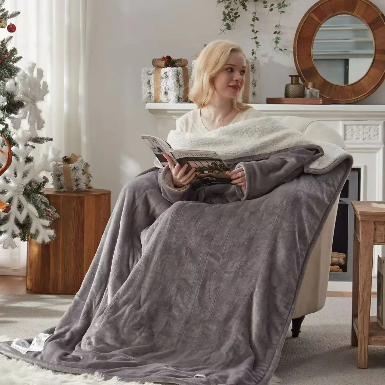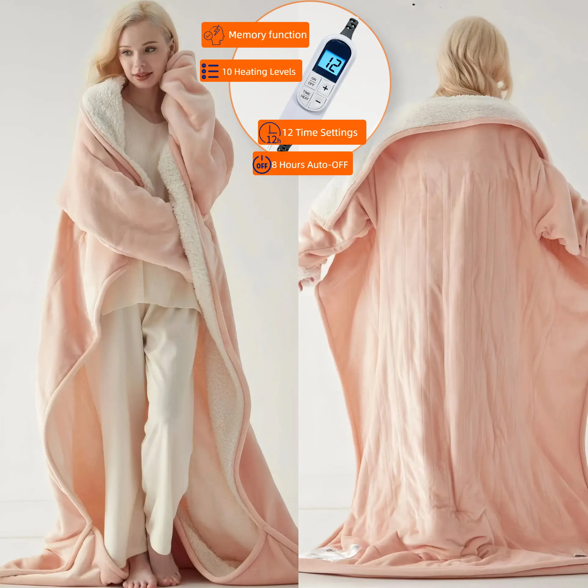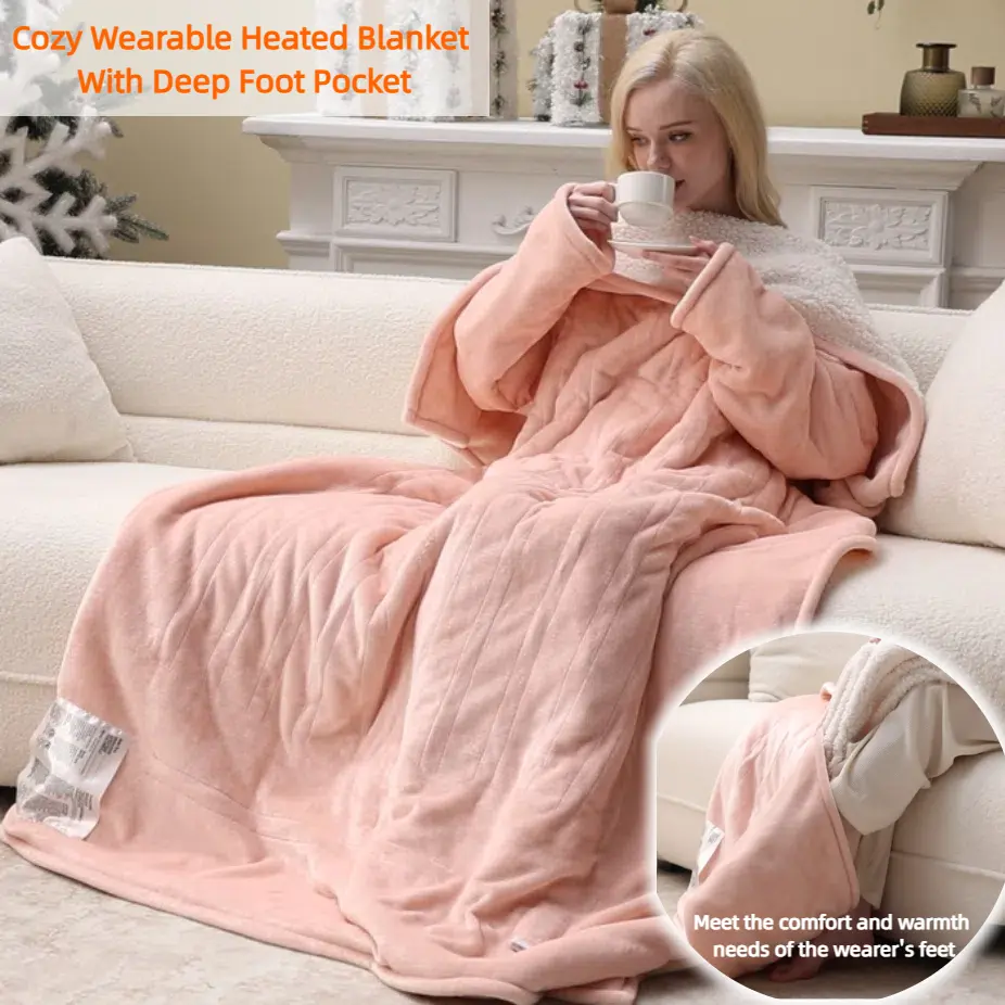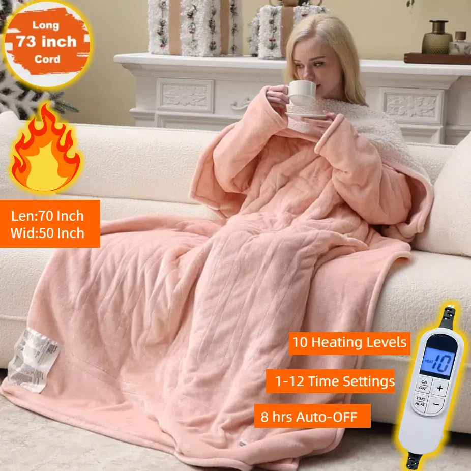 • 50*70 Inches Wearable Heated Blanket, fast heating, machine washable, warm and cozy. Perfect for RVs, offices, and homes. Enhances the atmosphere with warmth during cold winters. Includes a 9-foot long power cord for comfortable use. Provides ample length for various settings. Lovely people moves around freely—making tea, reading, sitting on a chair; A 9-inch long line will not hinder the movement of footsteps. Move from the living room to the bedroom, or even take it on road trips—warmth goes where you go. Safe, durable, and machine-washable? Yes, please!