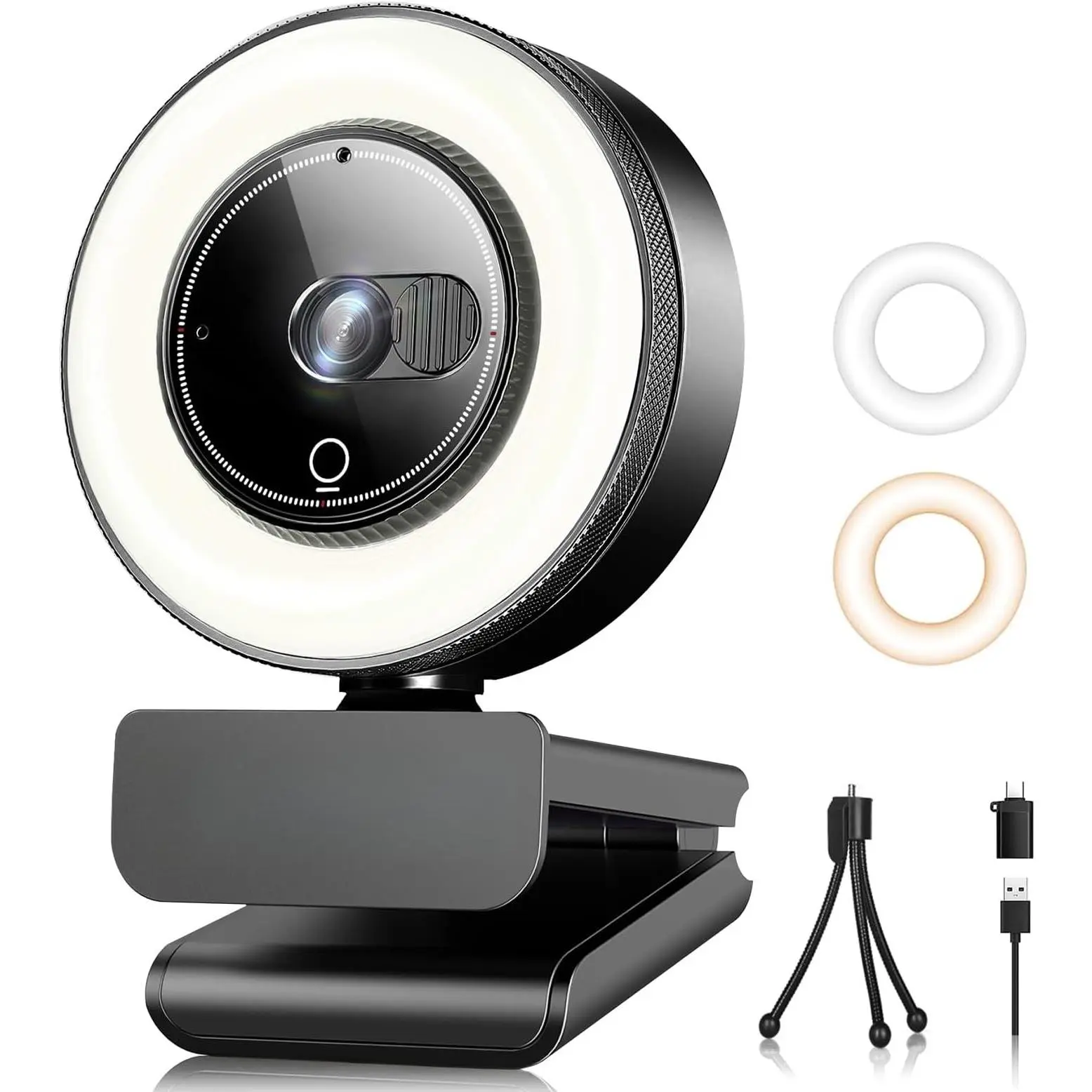 【Built-In Adjustable Ring Light: Enhance Your Video Experience】This webcam with light includes a built-in, adjustable ring light with two lighting modes and three brightness levels. the lighting conditions, you can illumination for your video calls. This web camera offers soft, lighting, making it for professional conferences, online classes, or even streaming content.