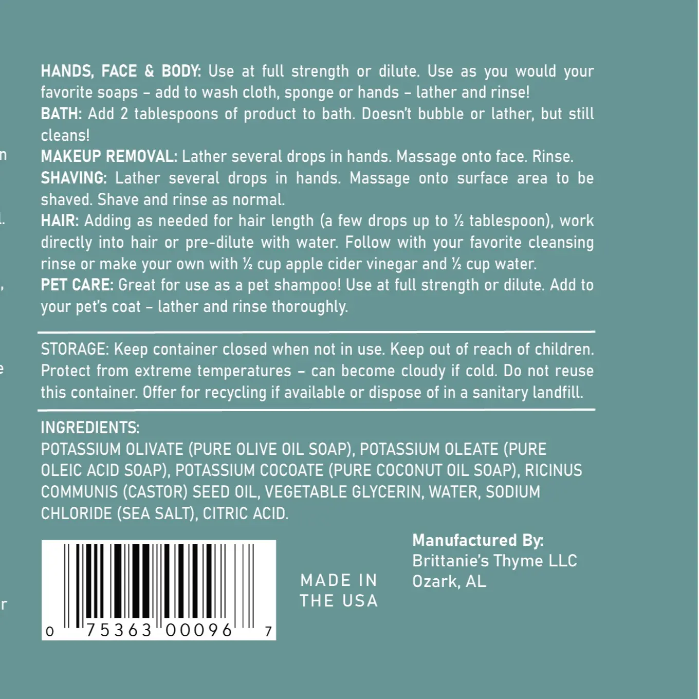 ·Type: Castile soap.