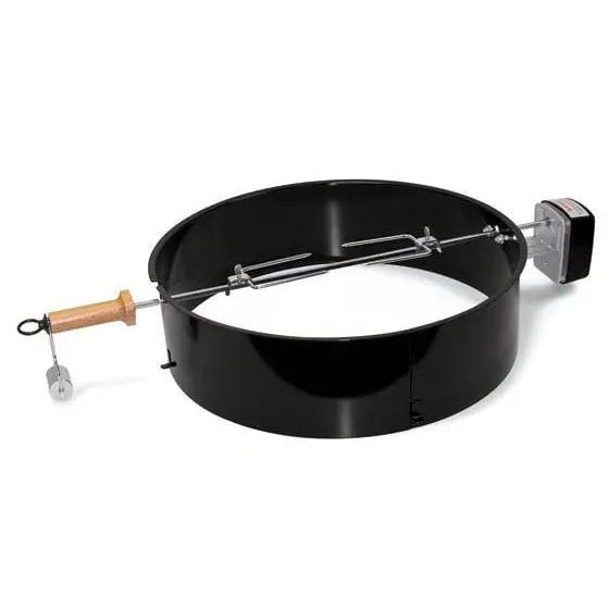 The Weber Kettle Rotisserie, designed for 22.5" charcoal kettle grills, is an essential accessory for grilling enthusiasts. This rotisserie features a durable electric motor that ensures consistent rotation for even cooking of your favorite meats. Its comprehensive one-piece spit rod provides added strength and stability, allowing you to roast larger cuts of meat with ease. Designed to fit all 22-1/2-inch charcoal kettle grills, the Weber Kettle Rotisserie is a versatile addition to your grilling setup. The heavy-duty electric motor ensures reliable performance, while the one-piece spit rod minimizes the risk of bending or flexing during use. Additionally, the rotisserie comes with a sturdy wooden rod handle, providing a comfortable grip for easy handling and maneuvering while cooking. Whether you're roasting a whole chicken, a prime rib roast, or a leg of lamb, this rotisserie enhances your grilling experience and helps you achieve delicious, evenly cooked results every time.