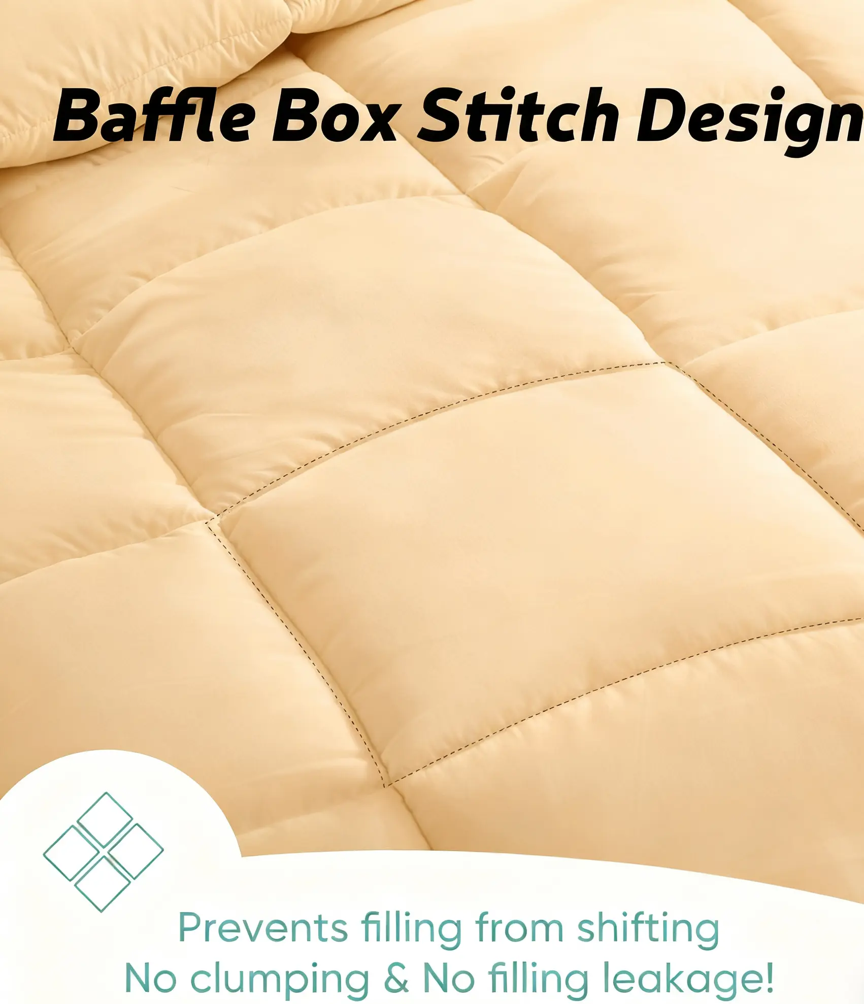 Classic Diamond Stitching - This comforter uses classic diamond stitching technology, securing the filling in place. Zero concern for filling leakage or loose threads.