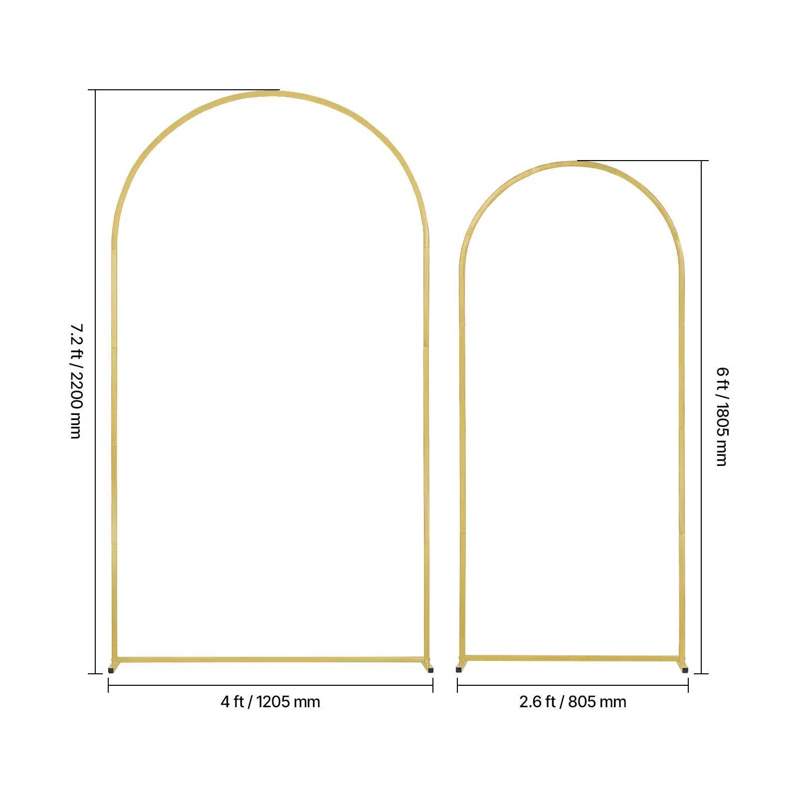 ⢠Elegant Design: This wedding arch backdrop stand includes 2 gold arch frames in sizes 7.2 x 4 ft and 6 x 2.6 ft, creating a romantic and elegant atmosphere for weddings while serving as a popular backdrop for guest photos.