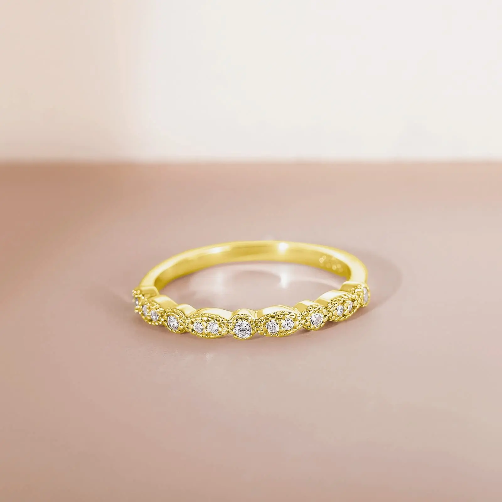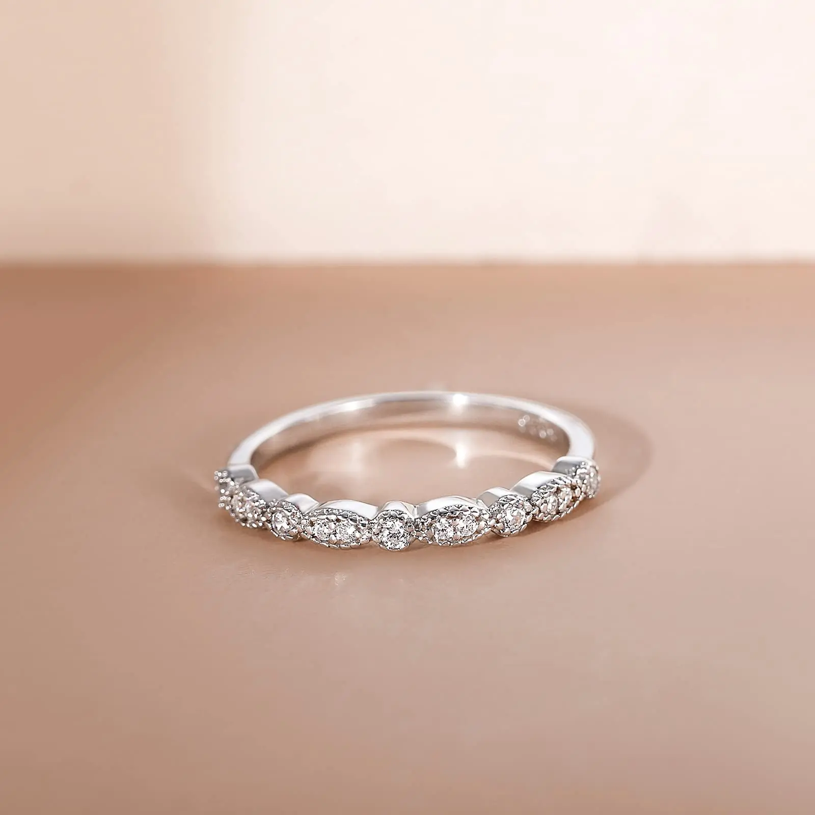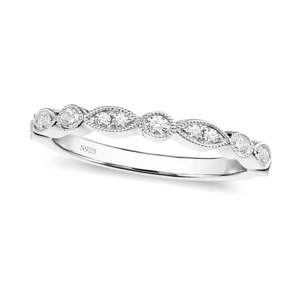 ·Stylish:Bezel-set cz stones encircle the finger in this glamorous and whimsical band. Milgrain detailing adds a delicate and lively glimmer. A wonderful choice as a wedding ring band, it is also the perfect band to stack or wear on its own