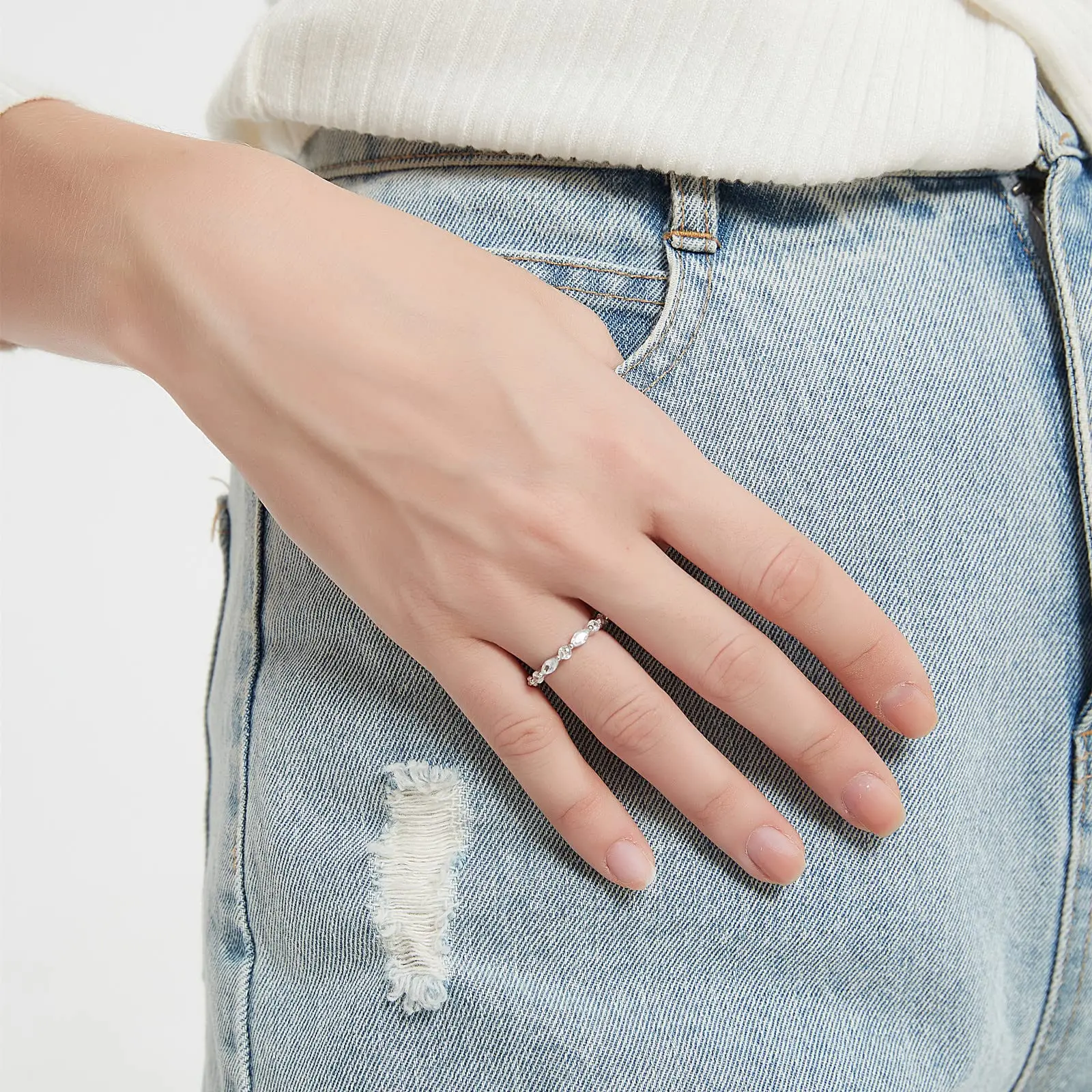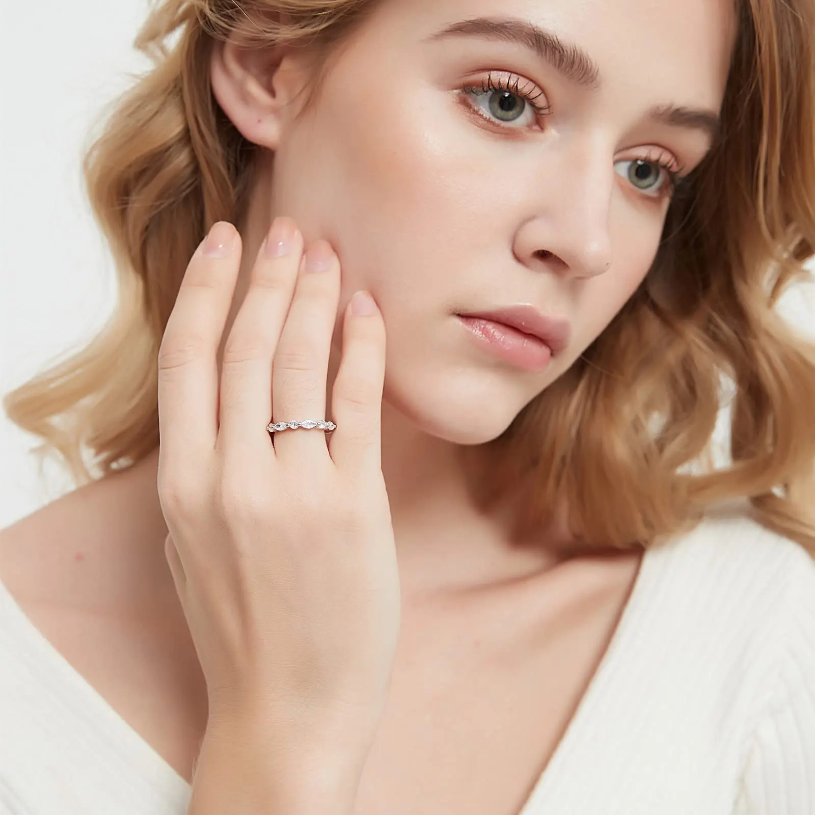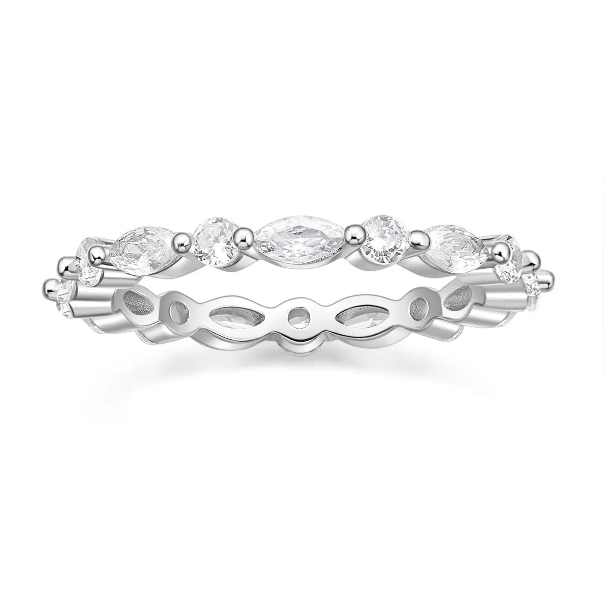 ·♥ Material ♥ Solid 925 sterling silver ring, paved with AAAAA+ clear sparkling cz stones, hypoallergenic and nickel free. It is the perfect complement to many engagement ring styles and looks lovely when stacked