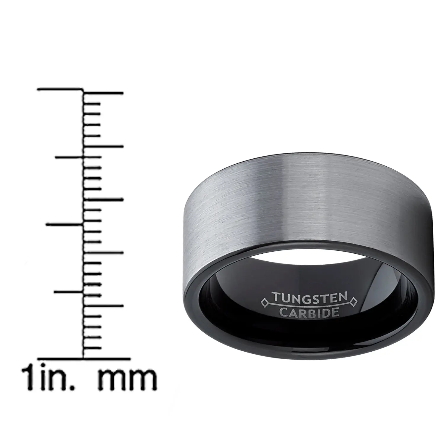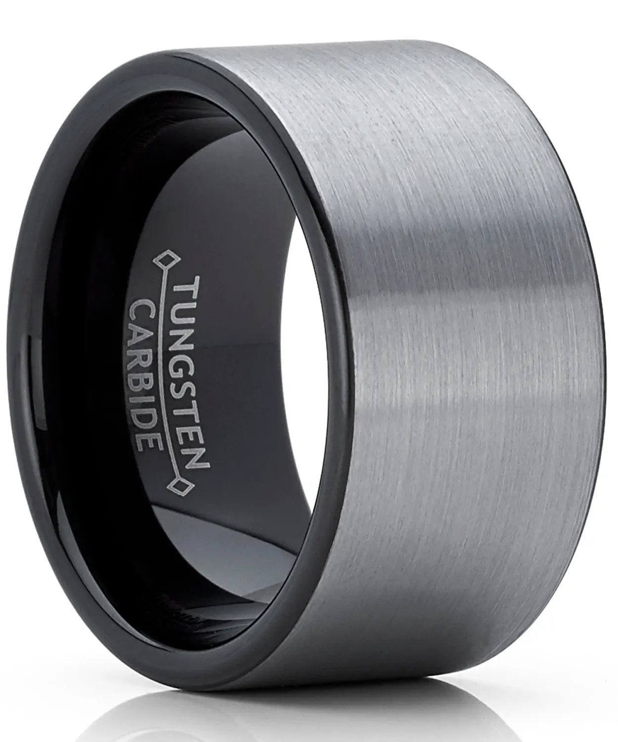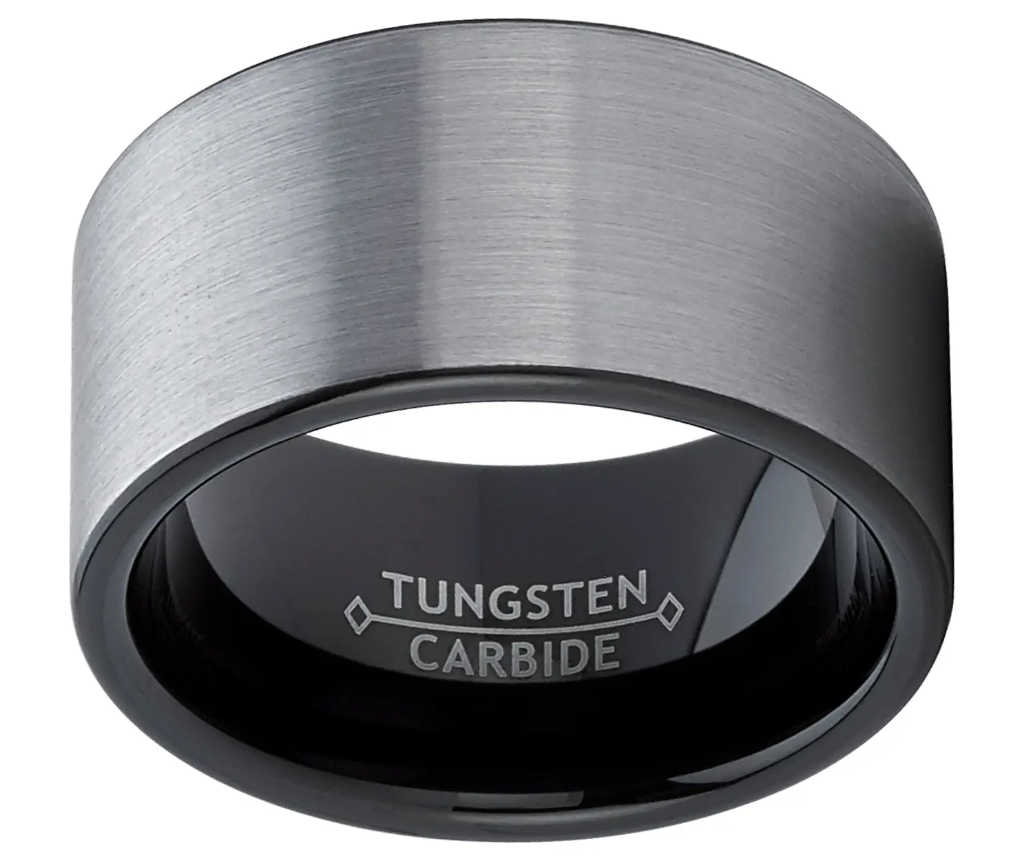 Leave a powerful impression with the manly black plated brushed men's tungsten band ring. Ring features a 12mm pipe-cut design, with a gun metal tone in the center. The ring's inner surface is contoured for a more Comfortable fit, making it convenient to wear even for prolonged periods. Thanks to the scratch-resistant design, your ring looks brand new even after significant wear.