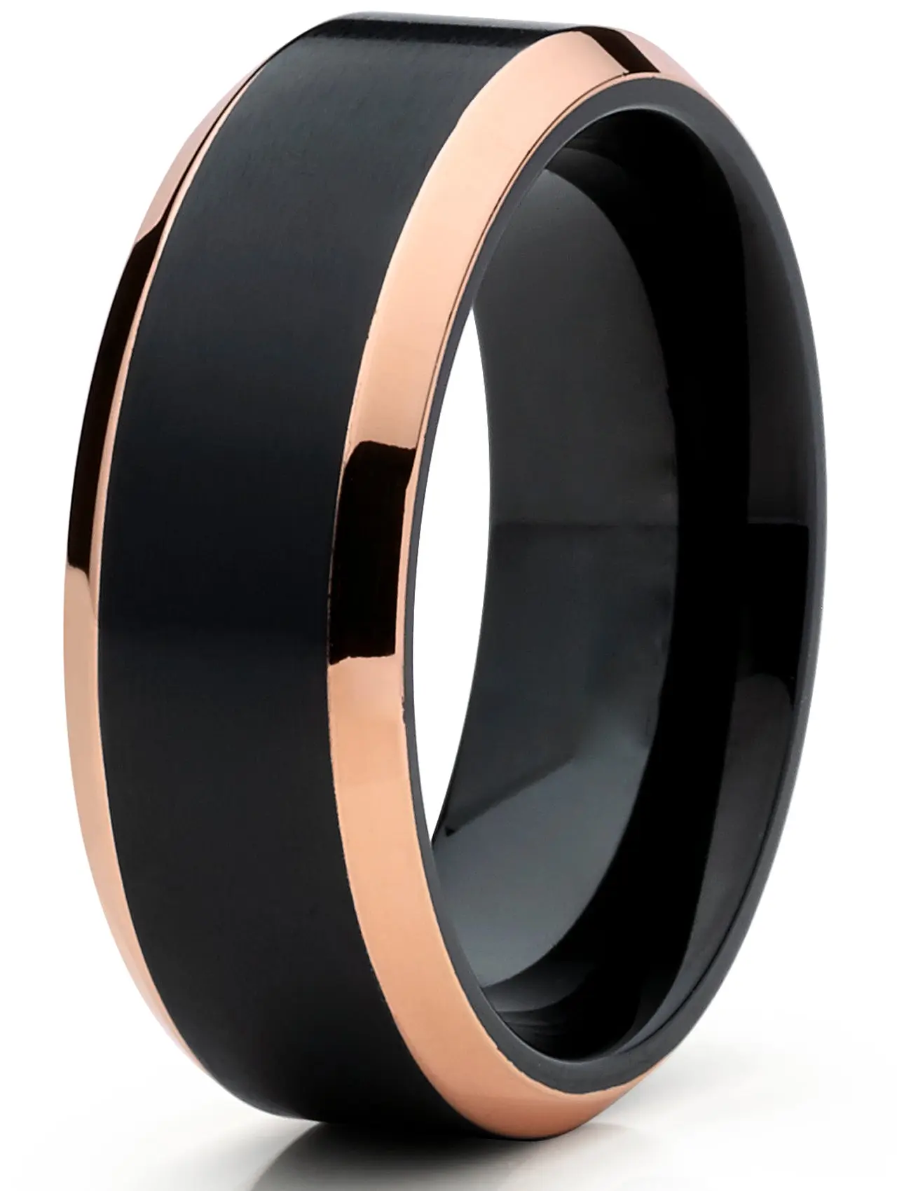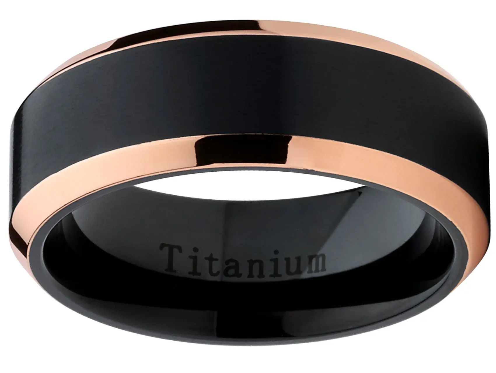 Rose Tone / Black Titanium Ring Wedding Band, Engagement Ring, High Polish Beveled Edge Ring