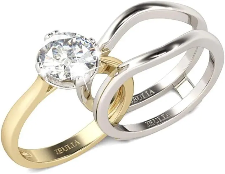 ·Material Quality: The jeulia 925 silver 14k gold plated enhancer ring set with Top quality 925 sterling silver, it have a resplendent sparkling and reflect rainbow gloss in the sunshine. Nickel-free, Lead-free, Cadmium-free and Allergic, tarnish resistant and will not easily change color.