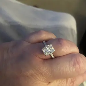 This ring is exquisite, I’m in aw about how much it looks like my real diamond ring! I have been wanting a radiant cut ring forever and this surpassed my expectations. It is simply flawless 💓 I thought the carat size would be to large for my small hands, but I’m in Love