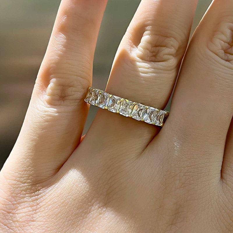 5. Effinny 3.5ct Radiant Cut Full Eternity Golden Wedding Ring,5A Cubic Zirconia Stackable Ring for Women In Sterling Silver Outdoorfun