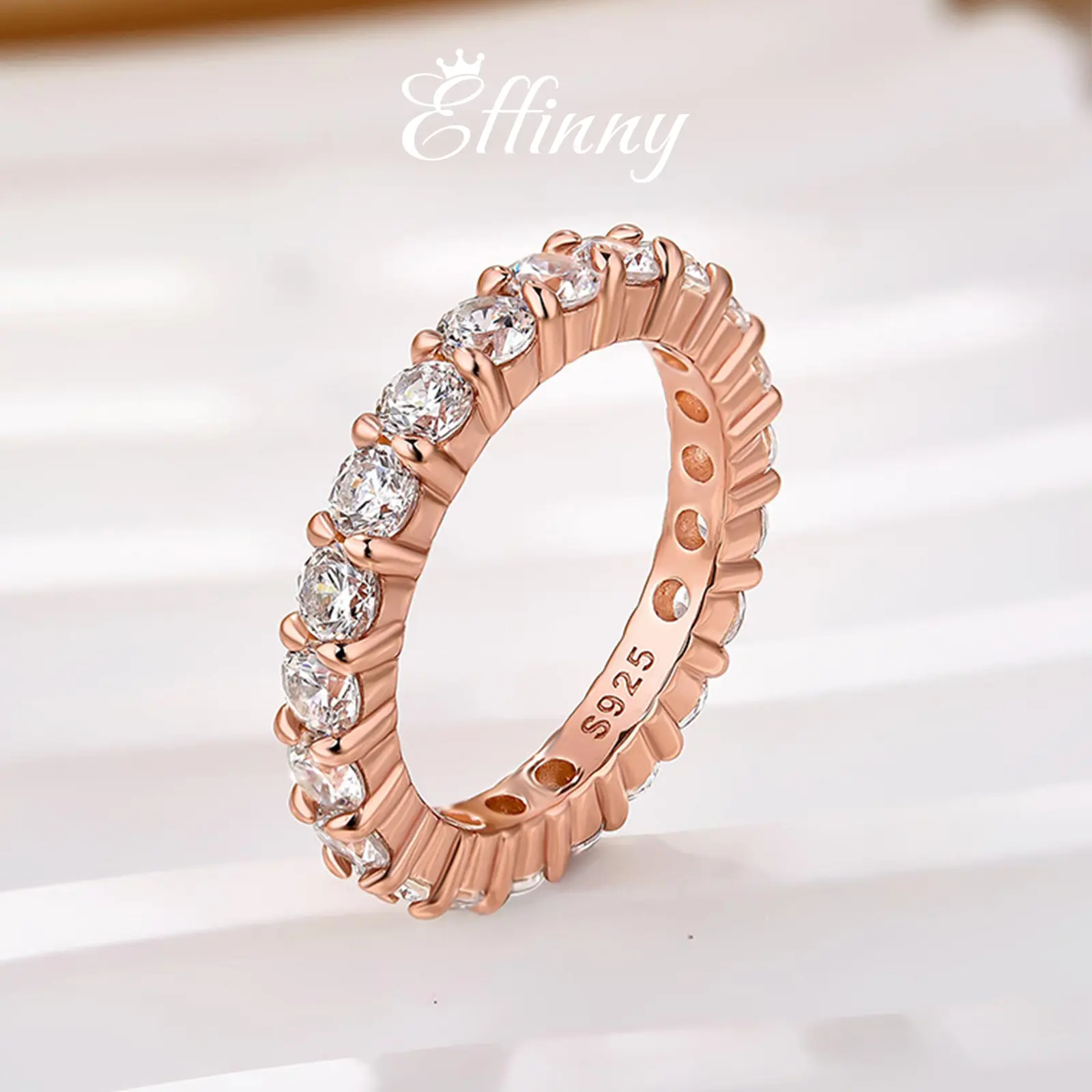 5. Effinny Full Eternity Round Cut Women's Wedding Band, 925 Sterling Silver Travel Ring, 5A Cubic Zirconia Stackable Ring for Daily