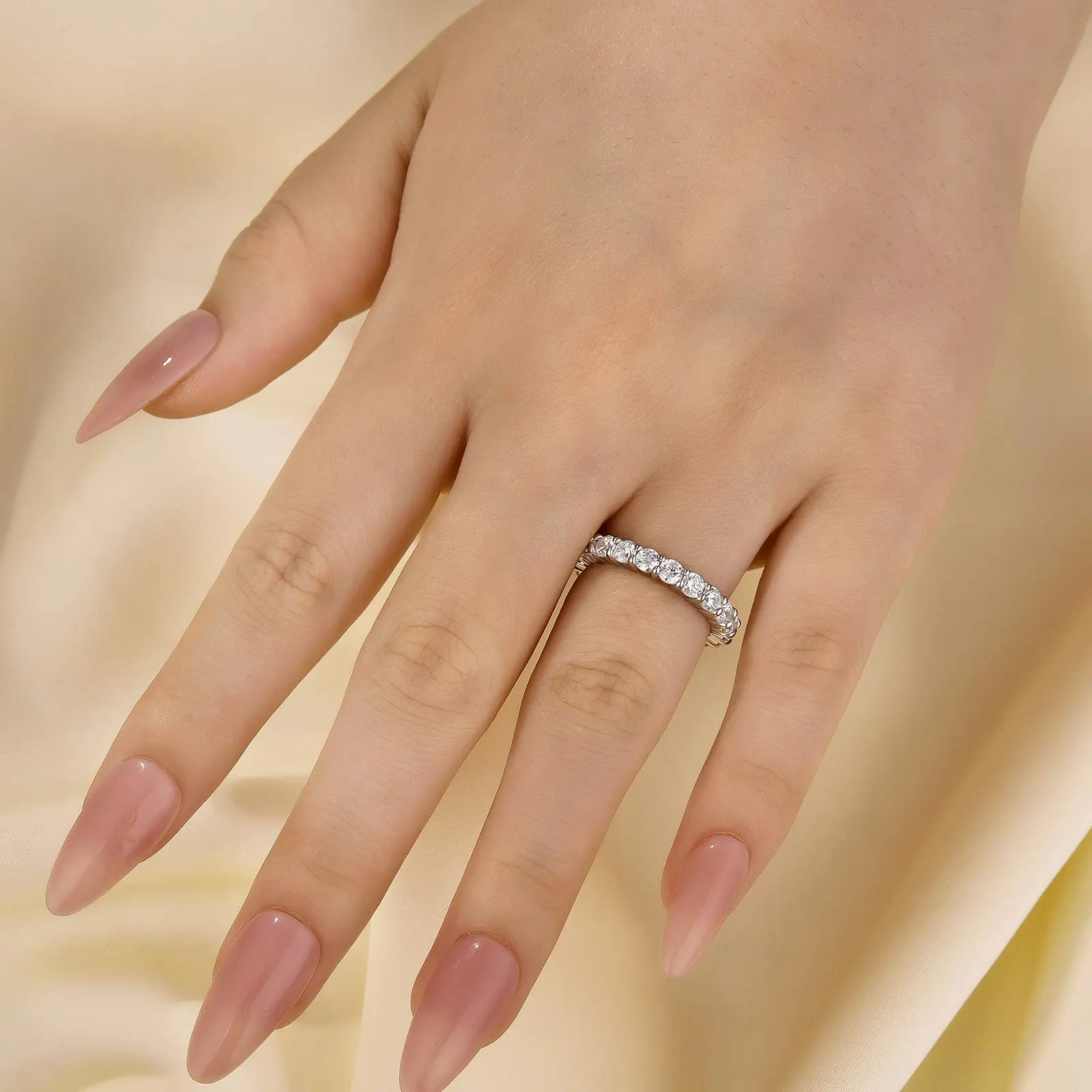 Effinny Full Eternity Round Cut Women's Wedding Band, 925 Sterling Silver Travel Ring, 5A Cubic Zirconia Stackable Ring for Daily