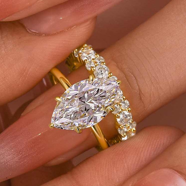 Marquise cut engagement ring with yellow gold.#engagementring #effinnyjewelry #ringgoals #travelring #effinnyringset #sterlingsilver #buynow #freeshipping #marquisecutdiamond #marquisecut#labgrowndiamond