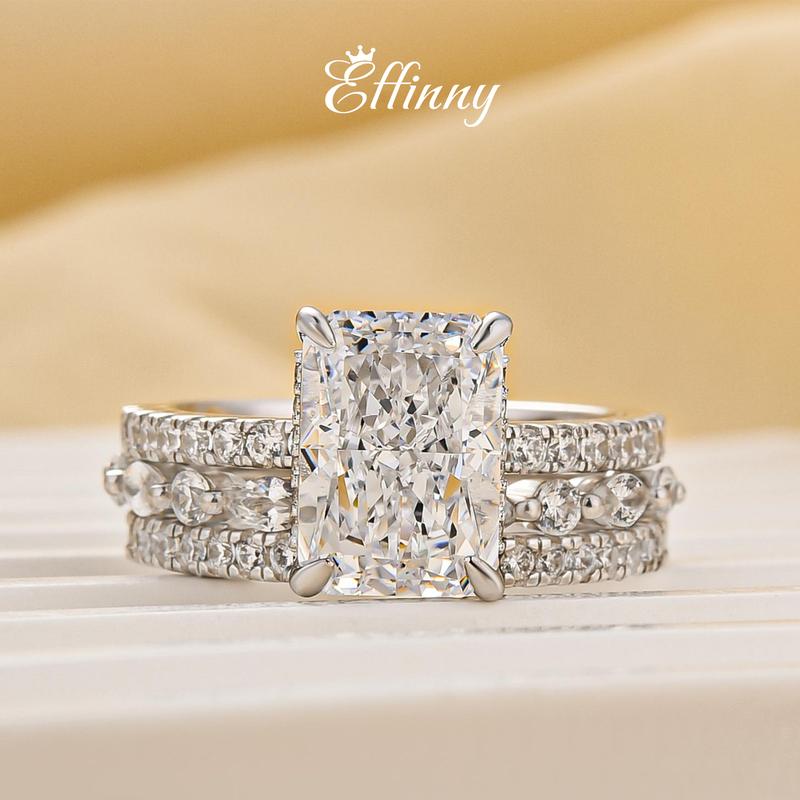 5. Effinny Jewelry Radiant Cut 3.5ct 3PC Wedding Ring Set, S925 Sterling Silver, 5A Cubic Zirconia Promise Ring,Bridal Set Rings,Anniversary Ring for Women