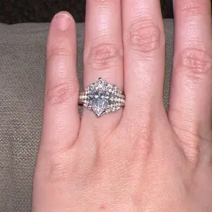 The ring is beautiful but the center diamond even though it’s fake could be more clear other than that it’s a nice ring. Just looks a little cloudy.