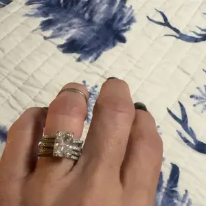 Beautiful set! However if you're petite with small hands just know this set looks kinda obnoxious and you probably won't fit the whole stack on one finger. The top heavy solitaire constantly spins. Also sizing slightly differs from each band, some are tighter and some loose.