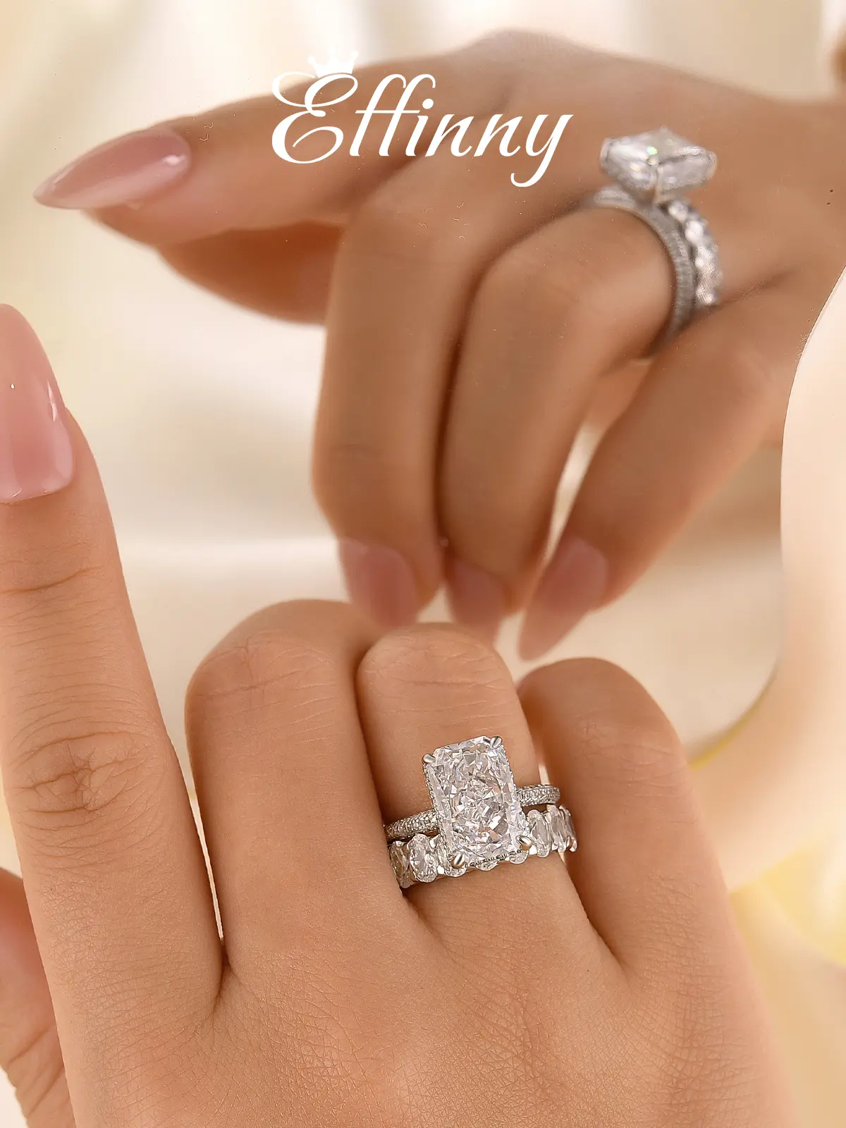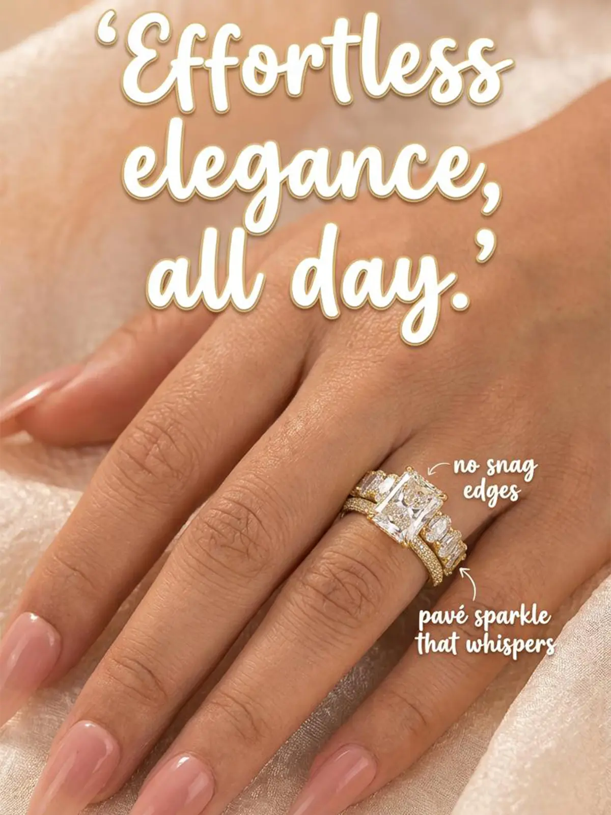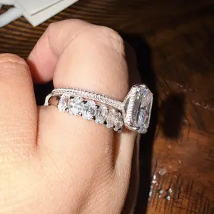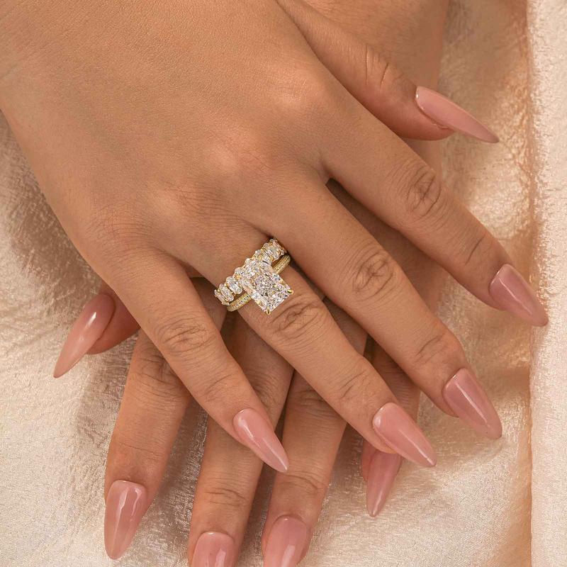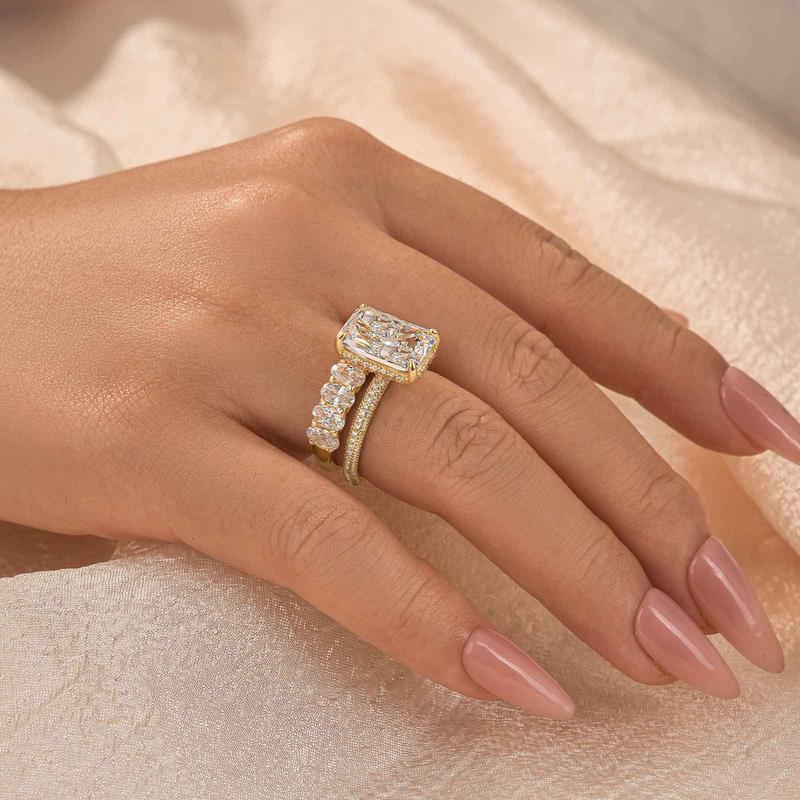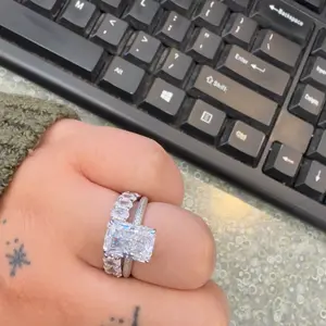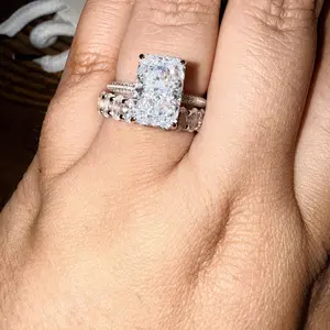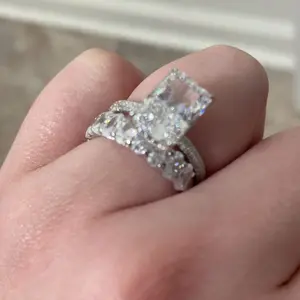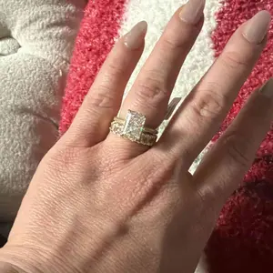 Absolutely stunning ring. Getting compliments everywhere I go. If you were on the fence about buying this ring set, don’t overthink it just purchase it. You will not regret it absolutely stunning pictures nor video do a justice it is that gorgeous.