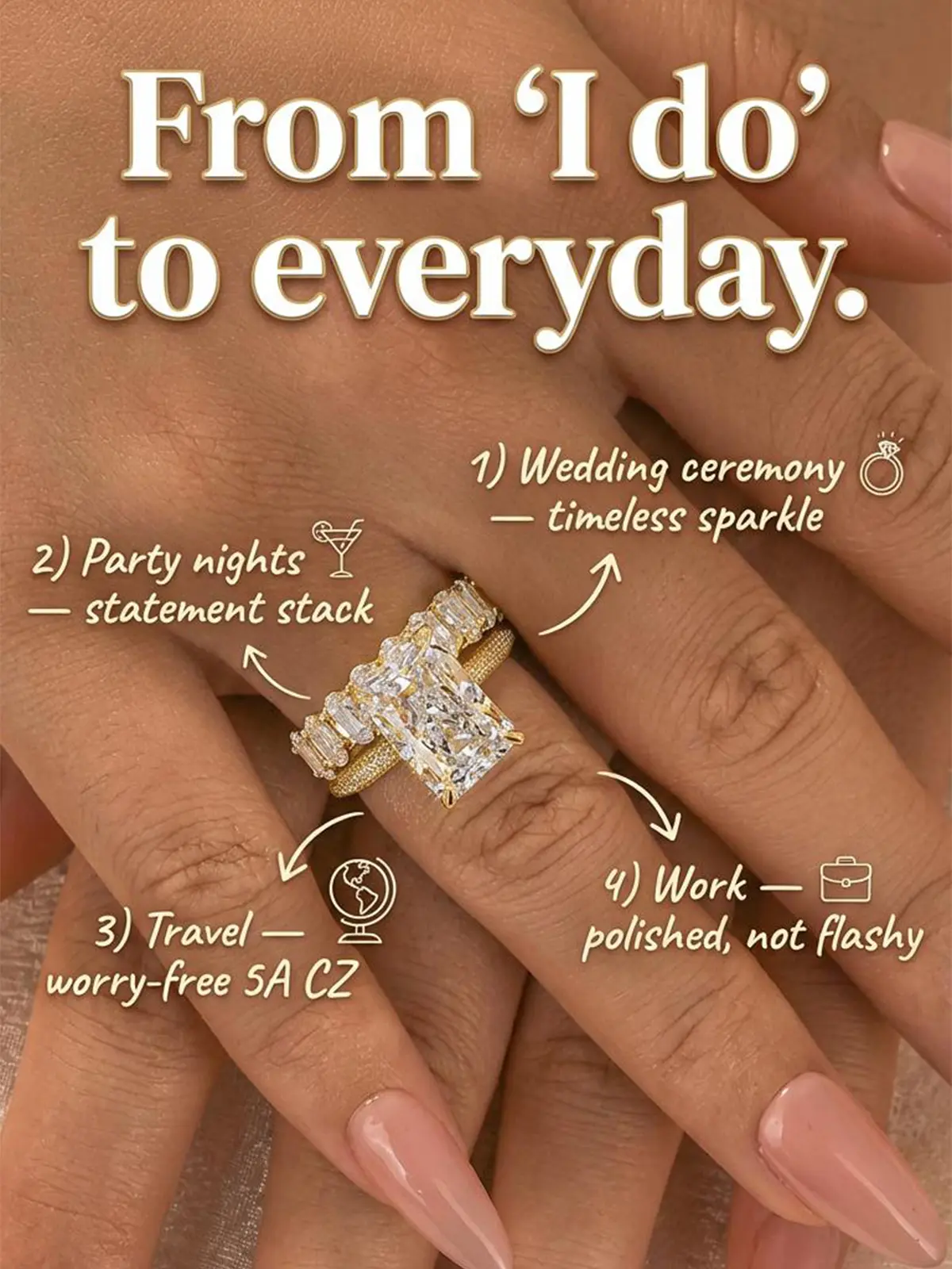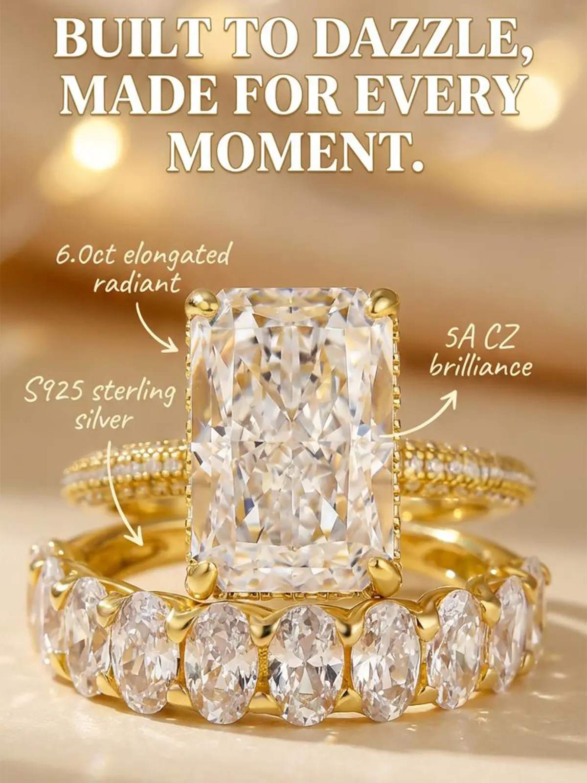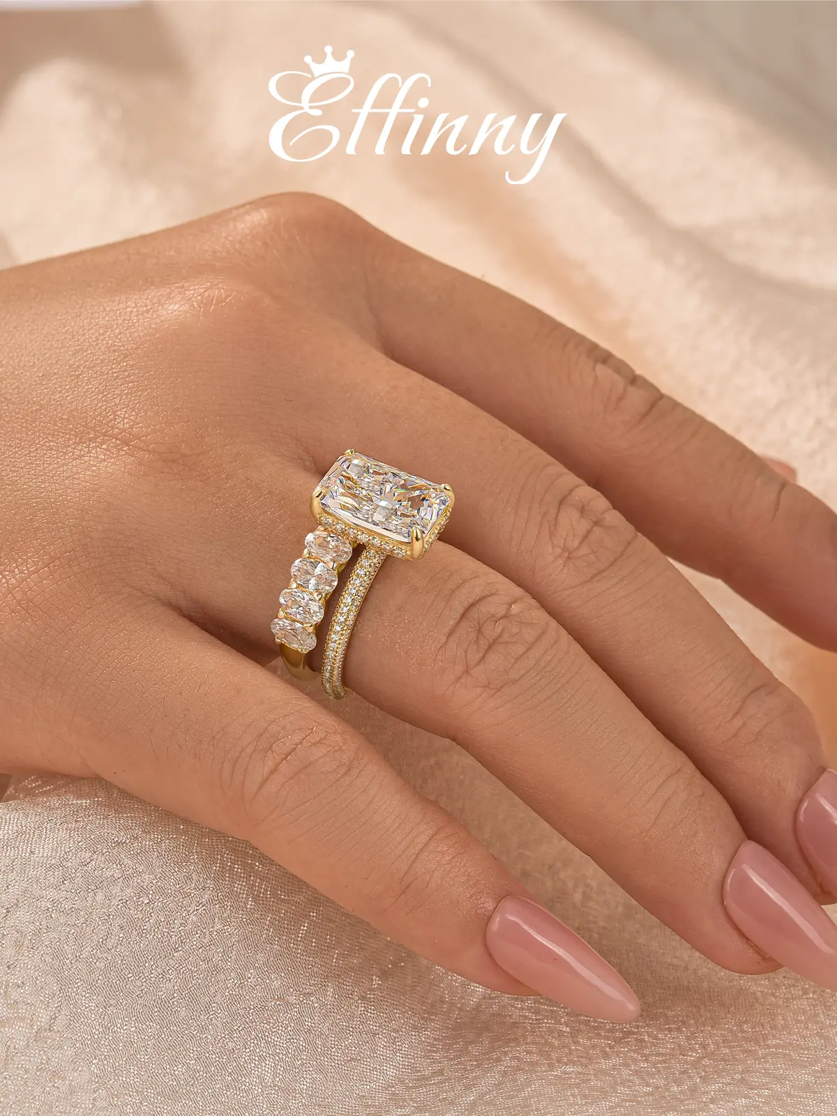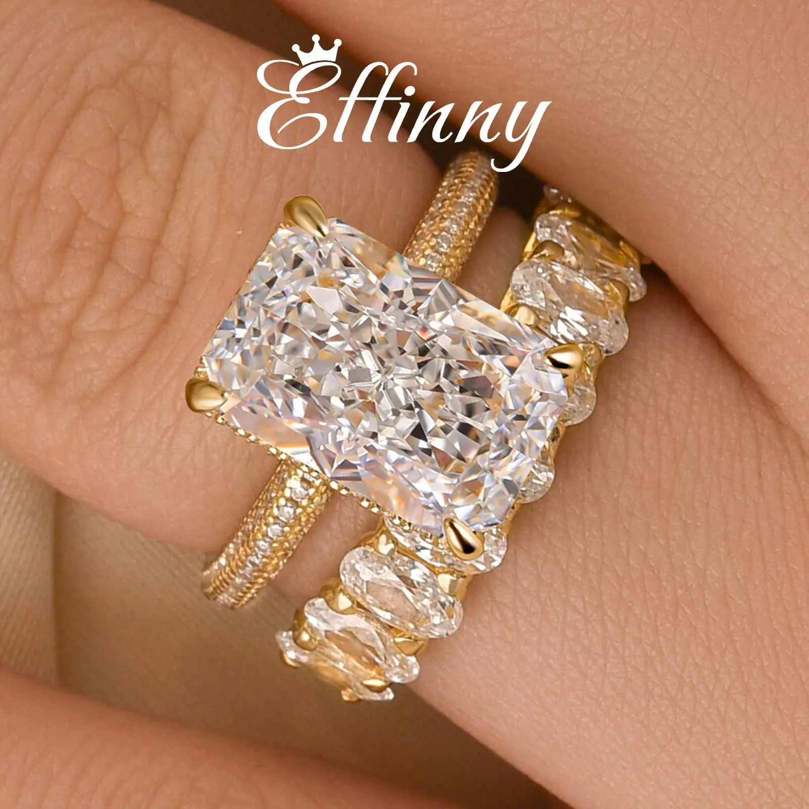 Absolutely stunning ring. Getting compliments everywhere I go. If you were on the fence about buying this ring set, don’t overthink it just purchase it. You will not regret it absolutely stunning pictures nor video do a justice it is that gorgeous.