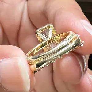 The ring was nice when it first arrived but the gold started to fade fairly fast the band isn’t clear the stones are cloudy so it takes away from the main ring the prongs that hold the stone turned silver maybe go with the silver instead of the gold one it might last but not worth the price