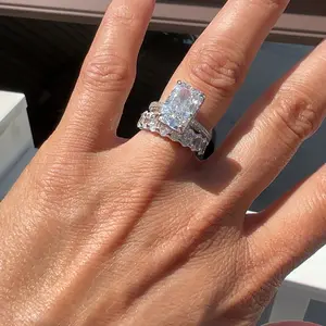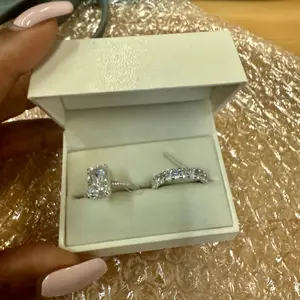 6.0ct radiant cut wedding rings set. #tiktokshopspringglowup #sterlingsilver  #tiktokshopspringglowup #sterlingsilver #cubiczirconia #silverring #jewelry #jewelrytiktok #silverjewelry #travelring #fashiontiktok #fashion #finejewelry #jewelryshop #fashionshop #fashiontrends #effinnyjewelry #effinny #effinnyengagementring💍 #effinnyjewelry #shopvideocarnlval #shopvideocarniva#fyp#engagementring#ttsleavelup #wardrobeessential #tiktokshoprestock#dealsforyoudays #tiktokshopsummerturnup #radiantcut