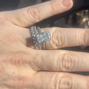 I tell y’all I was a bit skeptical about my fiancé ordering me this ring thinking it wasn’t the real deal. When the ring was delivered OMG😍😍😍😍 this is better WAY better than a diamond ring. Totally worth the price its so big and sparkly i ended up tearing up❤️ totally recommend this ring🤍