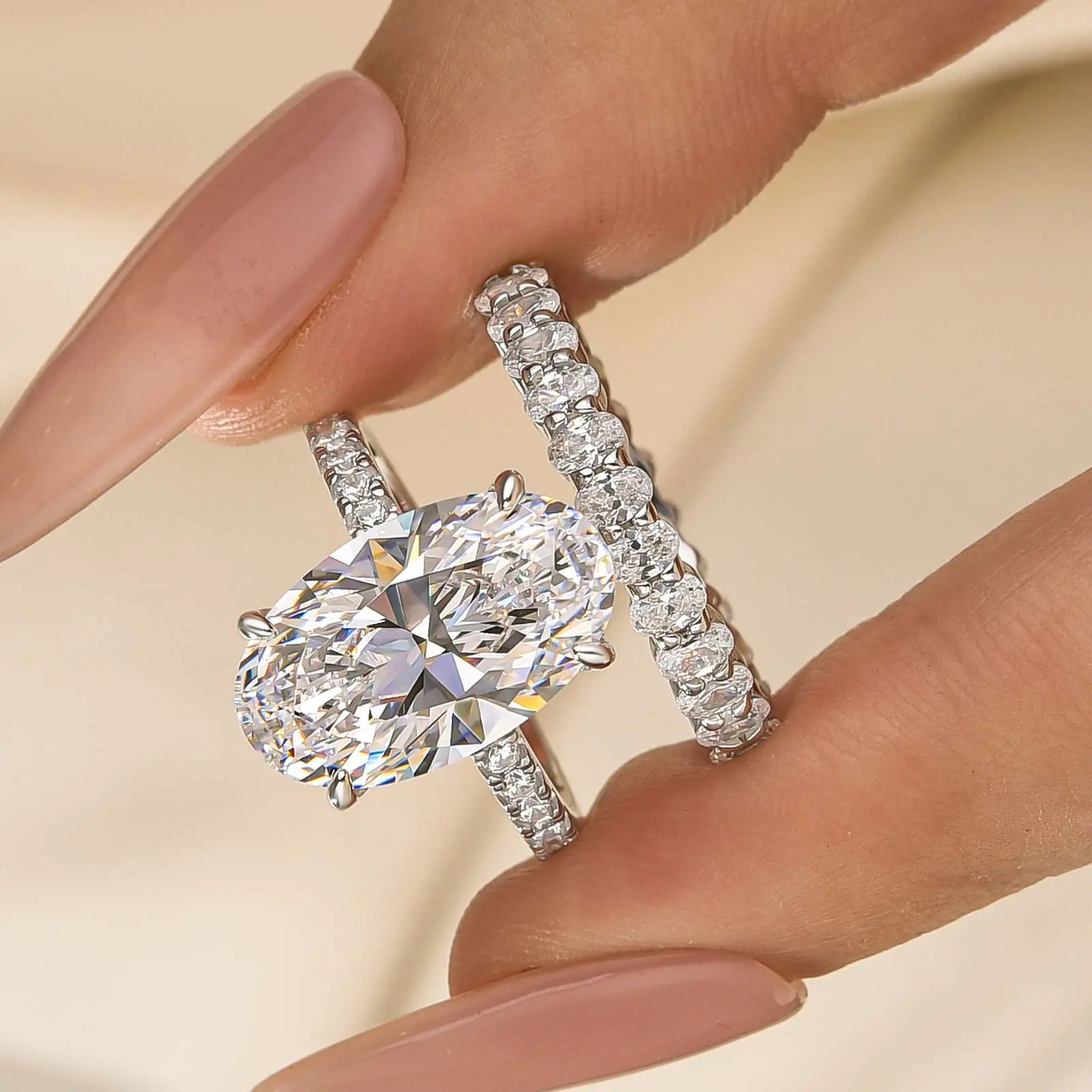 8.0ct oval cut wedding ring set. #tiktokshopspringglowup #sterlingsilver  #tiktokshopspringglowup #sterlingsilver #cubiczirconia #silverring #jewelry #jewelrytiktok #silverjewelry #travelring #fashiontiktok #fashion #finejewelry #jewelryshop #fashionshop #fashiontrends #effinnyjewelry #effinny #effinnyengagementring💍 #effinnyjewelry #shopvideocarnlval #shopvideocarniva#fyp#engagementring#ttsleavelup #wardrobeessential #tiktokshoprestock#dealsforyoudays #tiktokshopsummerturnup #tiktokshopmemorialday #outdoorfun #ovalcut #ovaldiamond