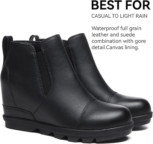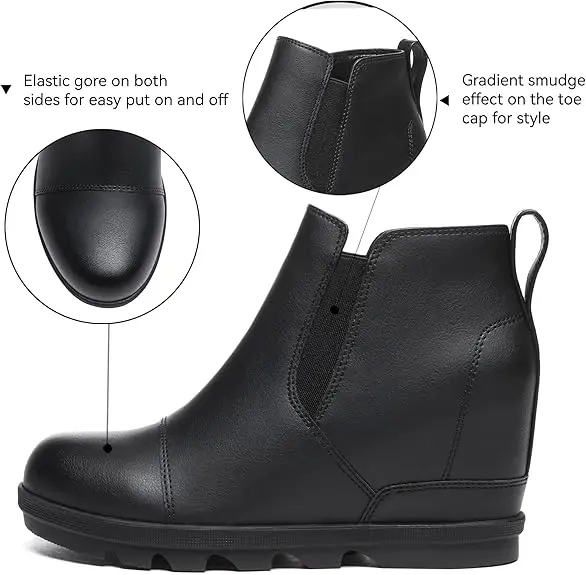 ·Design: Ankle boots complement a girl's beauty,these wedge boots feature hidden wedge heel that provides some support and also elongates your visual proportions