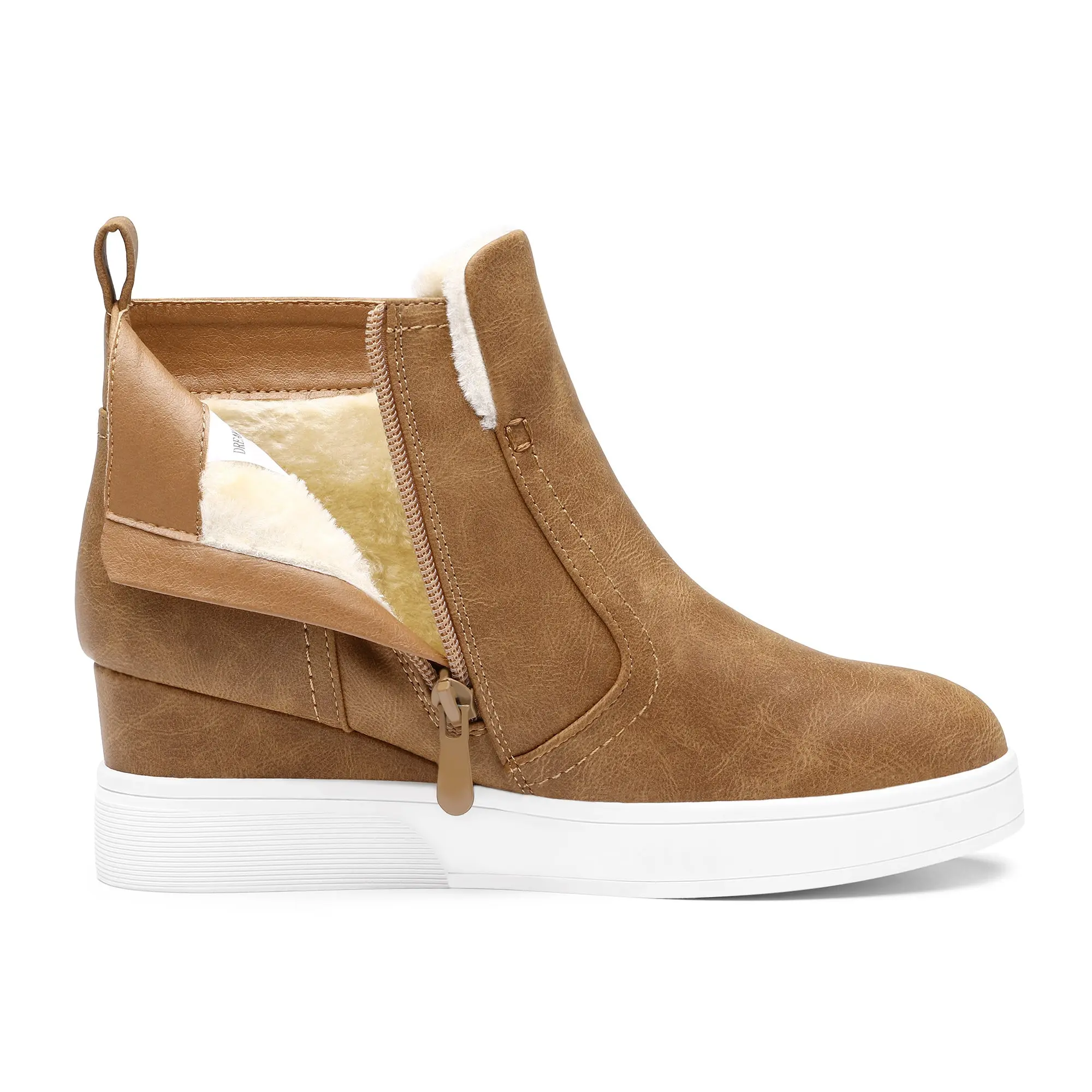 Sneaker style wedge boots are back in style and these slip-on ankle booties with faux fur trim are great for cold weather. Designed with a round toe and inside zipper, these versatile ankle boots can make any outfit stylish.