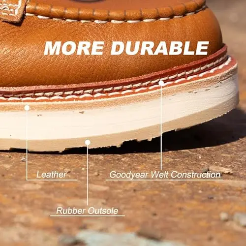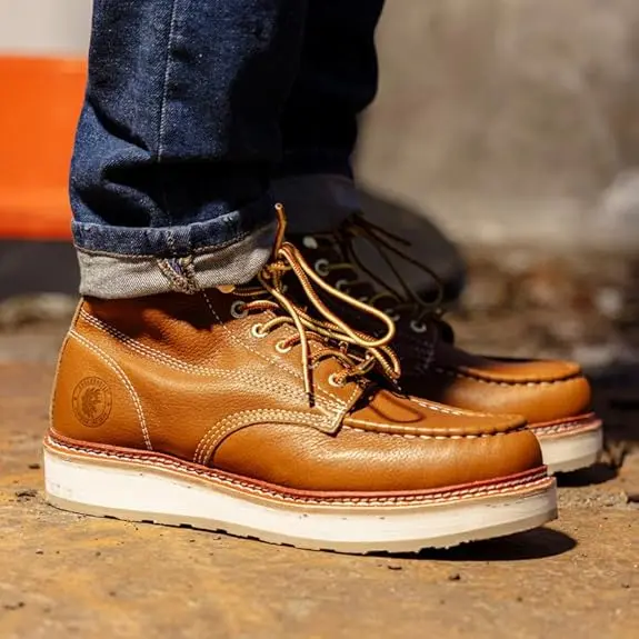 ROCKROOSTER Men's 6-inch Soft Toe Wedge Work Boots, Safety Water Resistant Leather Boots, Slip Resistant, ASTM F2892