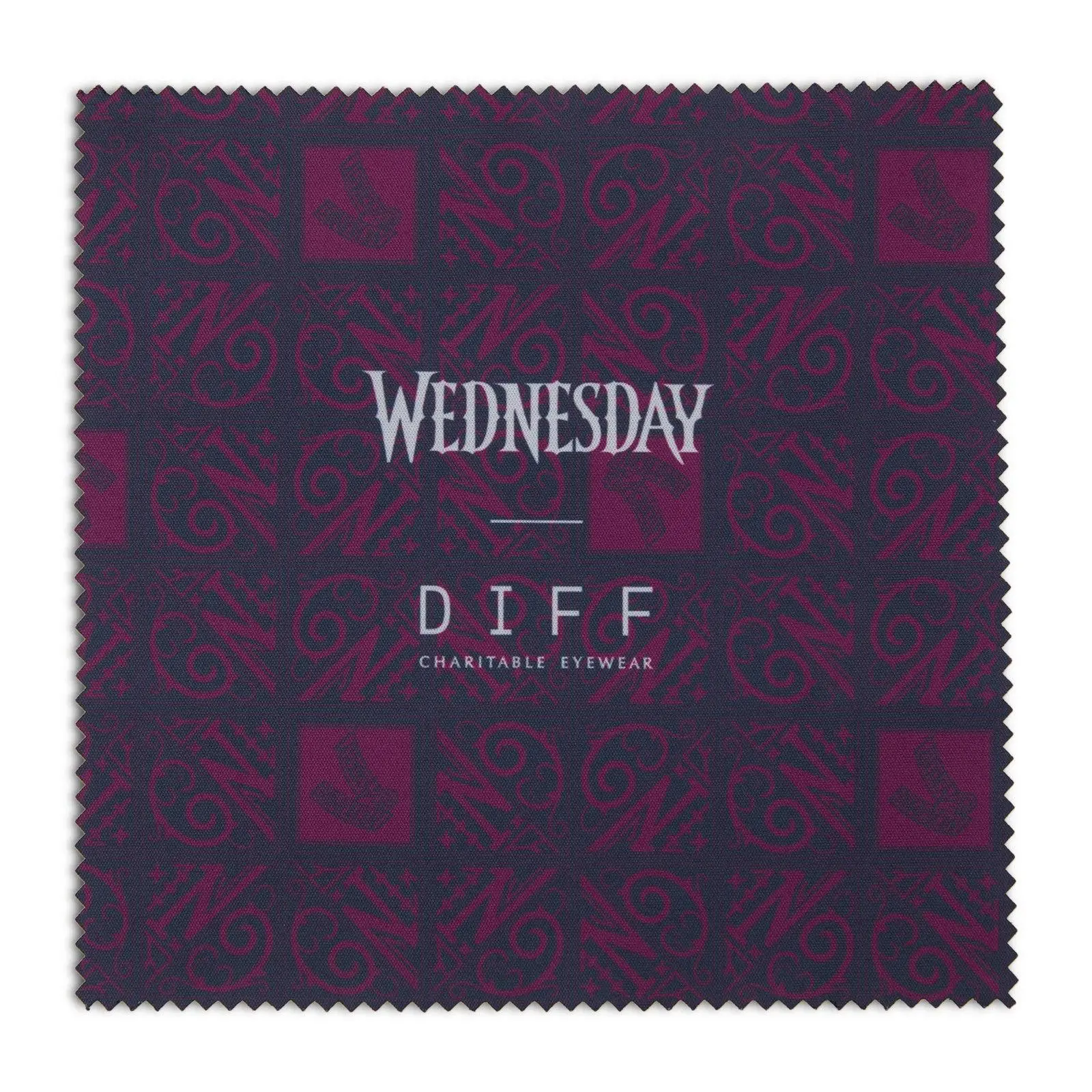 WEDNESDAY ADDAMS Midnight Black + School Uniform Stripes with Raven Lenses Moody, macabre, and totally the moment. The Wednesday Addams shades feature chic black frames in trendy thick acetate with a crystal clear layer to highlight Nevermore striping. The Nevermore Academy crest and iconic "I'm allergic to color" quote can be found at the temples.