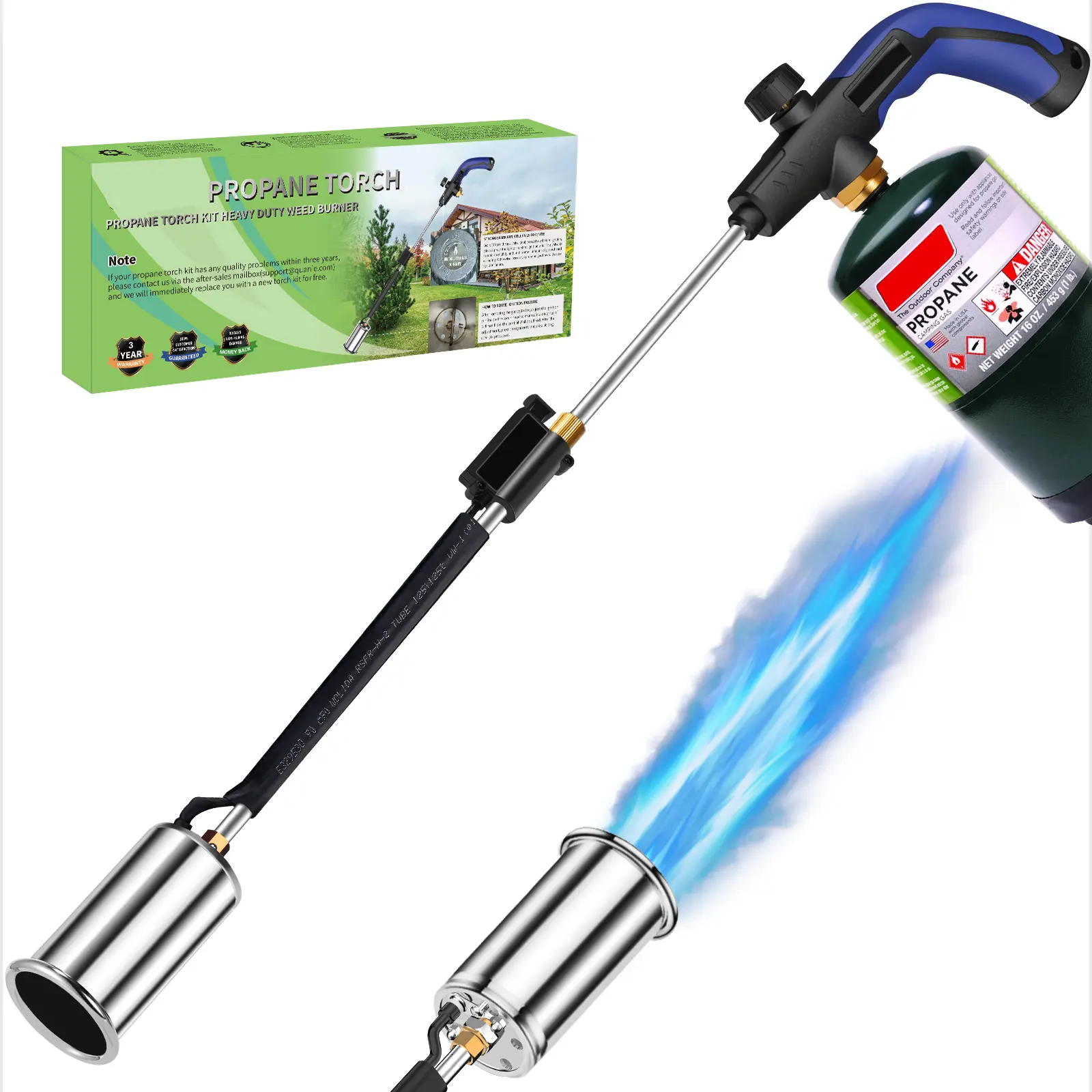 ă3-Year Quality GuaranteeăOur weed torch propane burner comes with a 3-year warranty, if you encounter any after-sales problems with the product, you can contact the after-sales service team at any time, the professional team is online at any time.