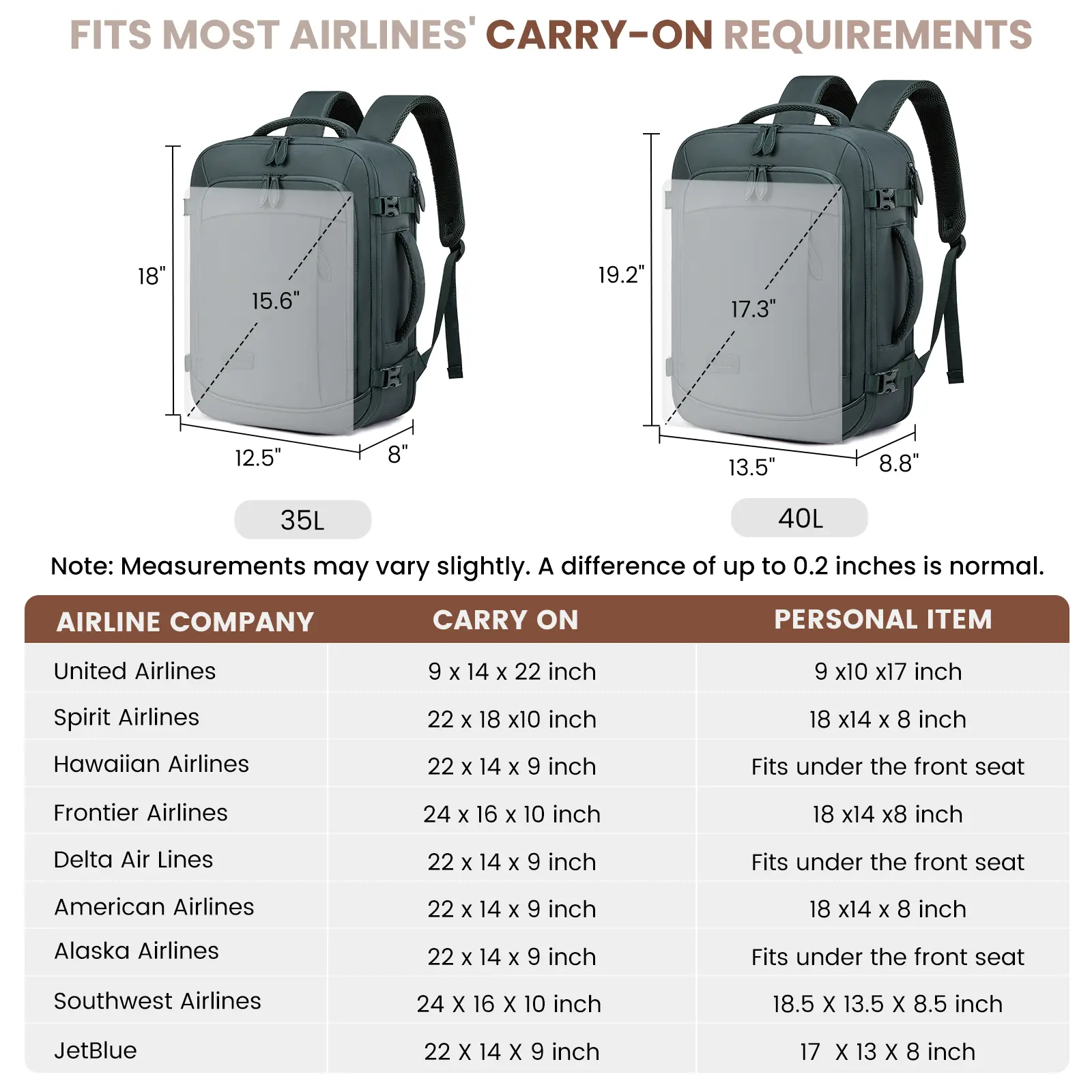 · Airline approved size
