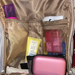 -Equipped with three storage pockets: two for clothes and toiletries, and one shoe pocket for easy organization.