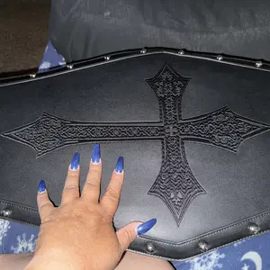 Material: Amazing details!! Love the spider web on one side then the velvet cross on the other!!