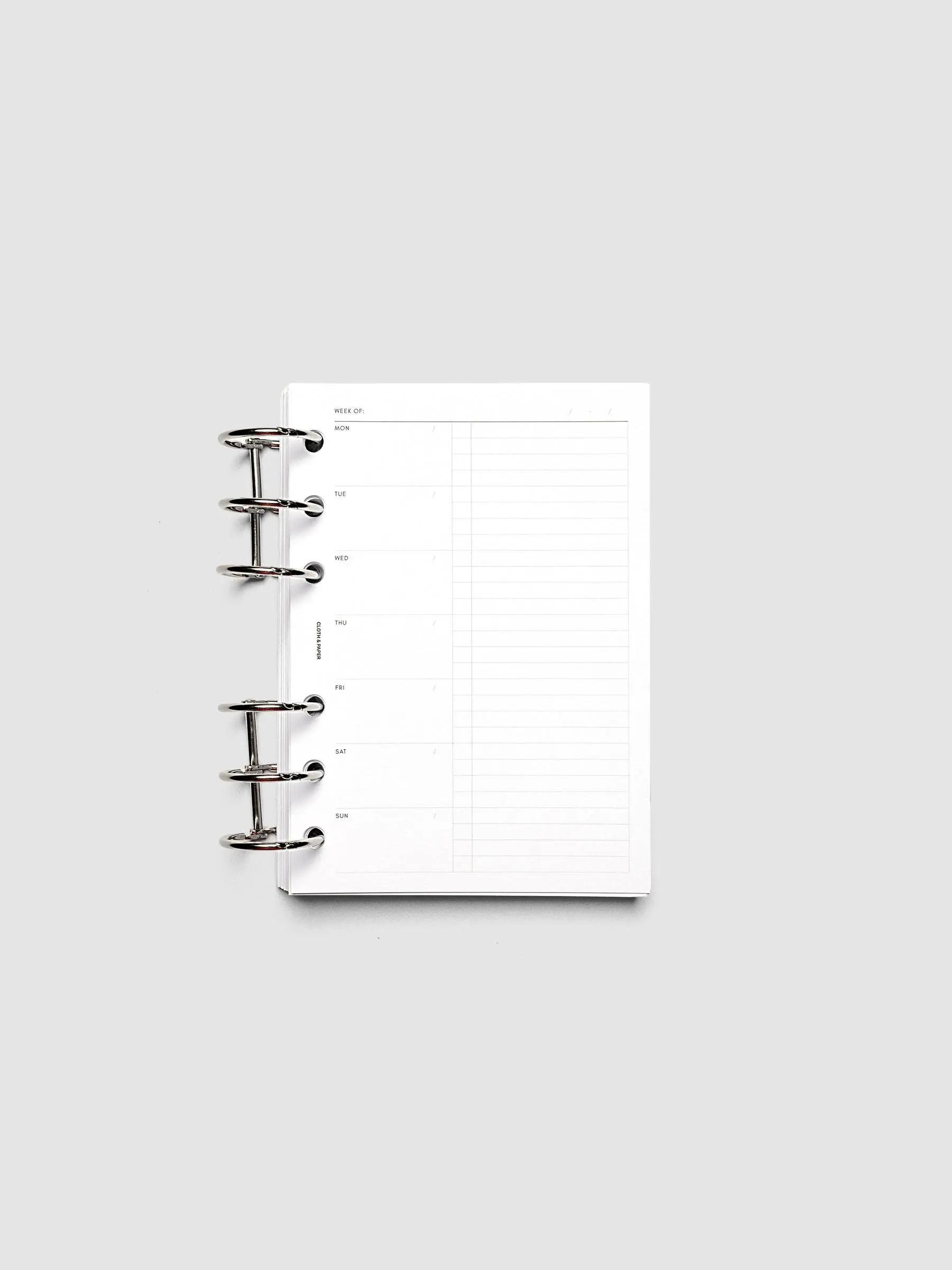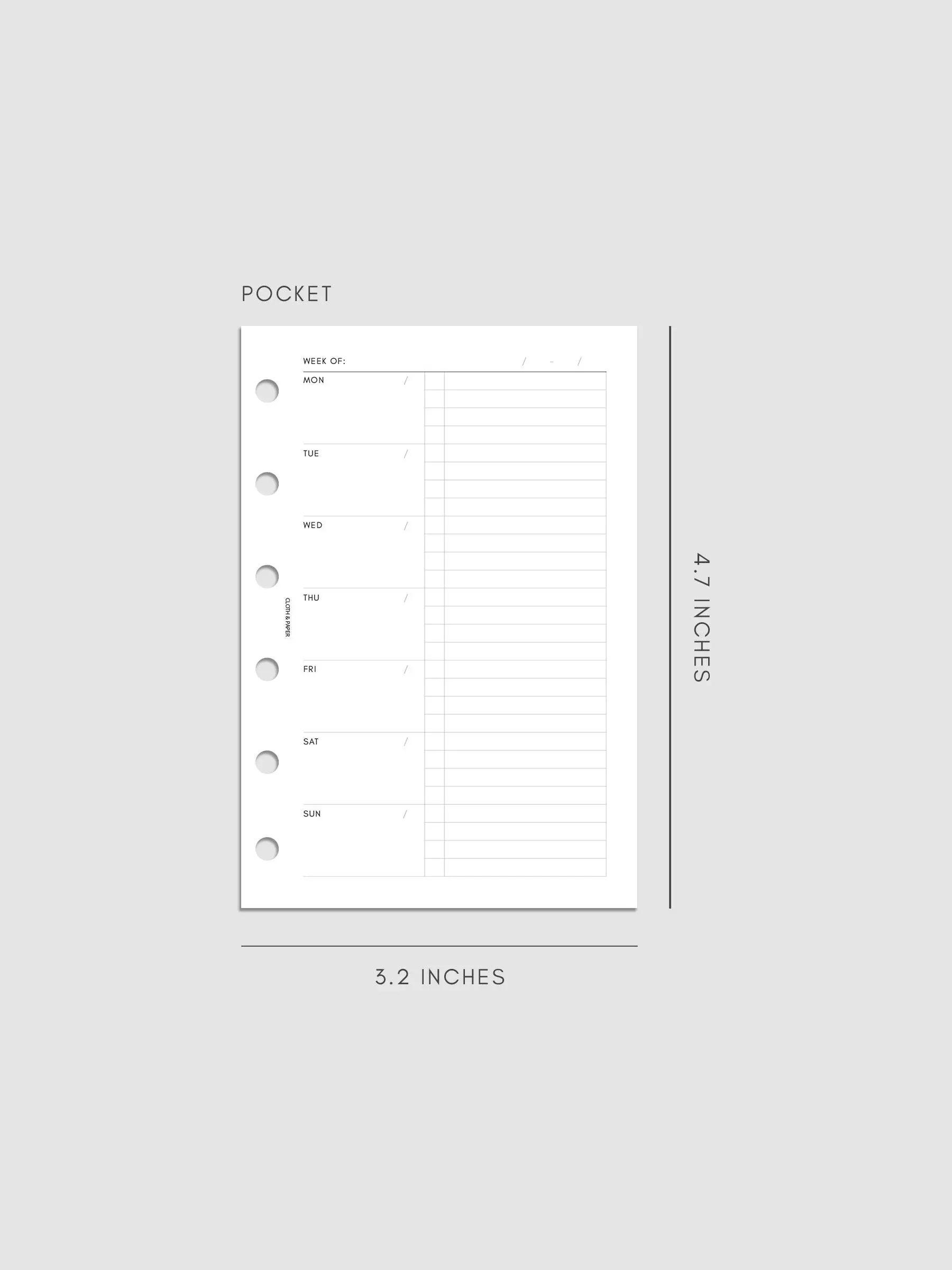These Weekly Checklist Planner Inserts offer a clean, horizontal layout, with lists at the forefront. Each week is structured in rows rather than columns, making it easy to track daily checklists while keeping related tasks and notes aligned across the week.