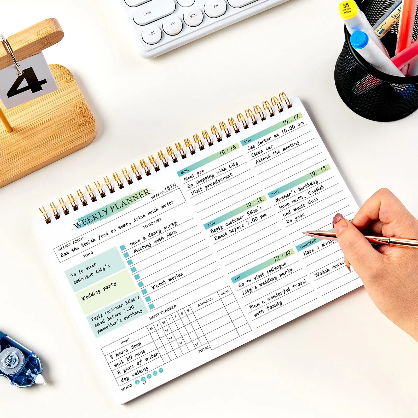 Total 52 Weeks and Guide Each Week: Weekly spread with enough space to record your daily routine and plans,keep track of all days clearly with the weekly view, establish your weekly goals and reflect on your performance each week. Our weekly to do list notepad help cultivate good habits.