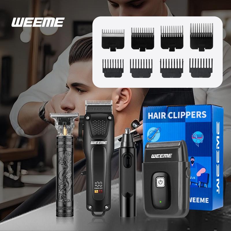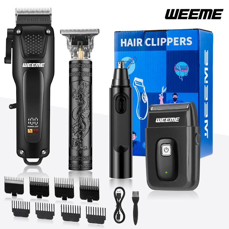 5. Weeme 3pcs/4pcs Blue Home Electric Hair Trimmer Set, USB Rechargeable, T-Head Trimmer, Shaver, Nose Hair Trimmer, Holiday Gift for Boyfriend, Hair Clippers Set
