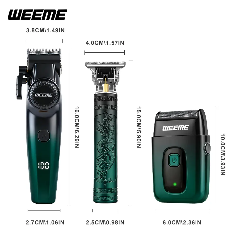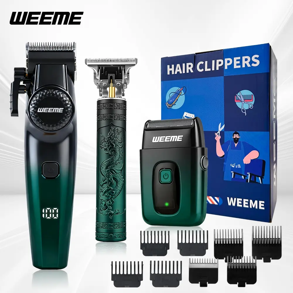 Weeme Men's Electric Hair Trimmer Set, Barber Hair Clippers, 3-Piece Beard Trimmer Kit, USB Charging, T-Shape Blade, Razor, Nose Hair Trimmer, Holiday Gift